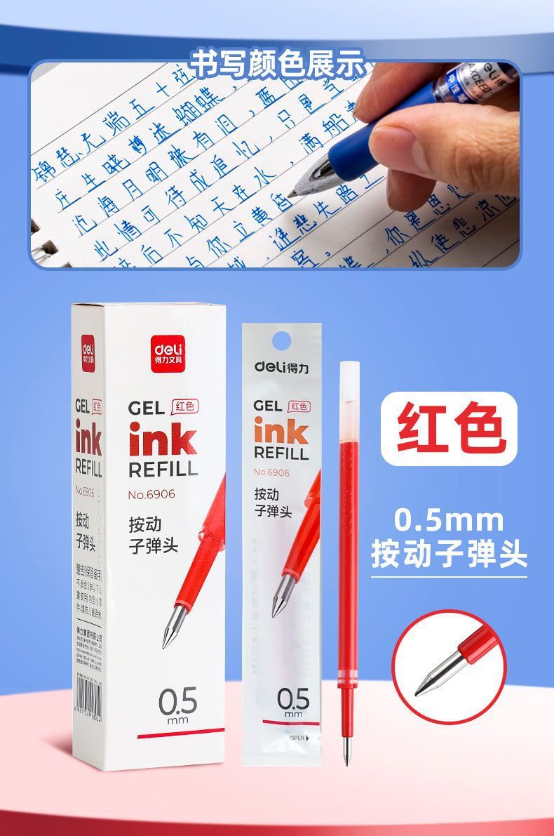 델리 프레스 리필 블랙 0.5 프레스 총알 헤드 젤 펜 리필 대용량 서명 펜 리필 6906