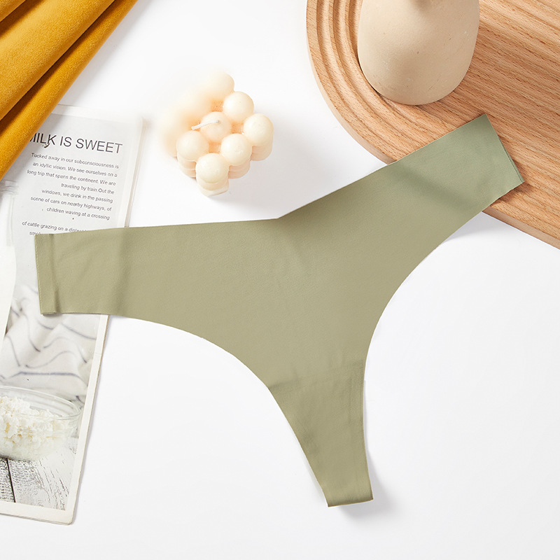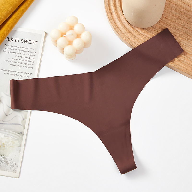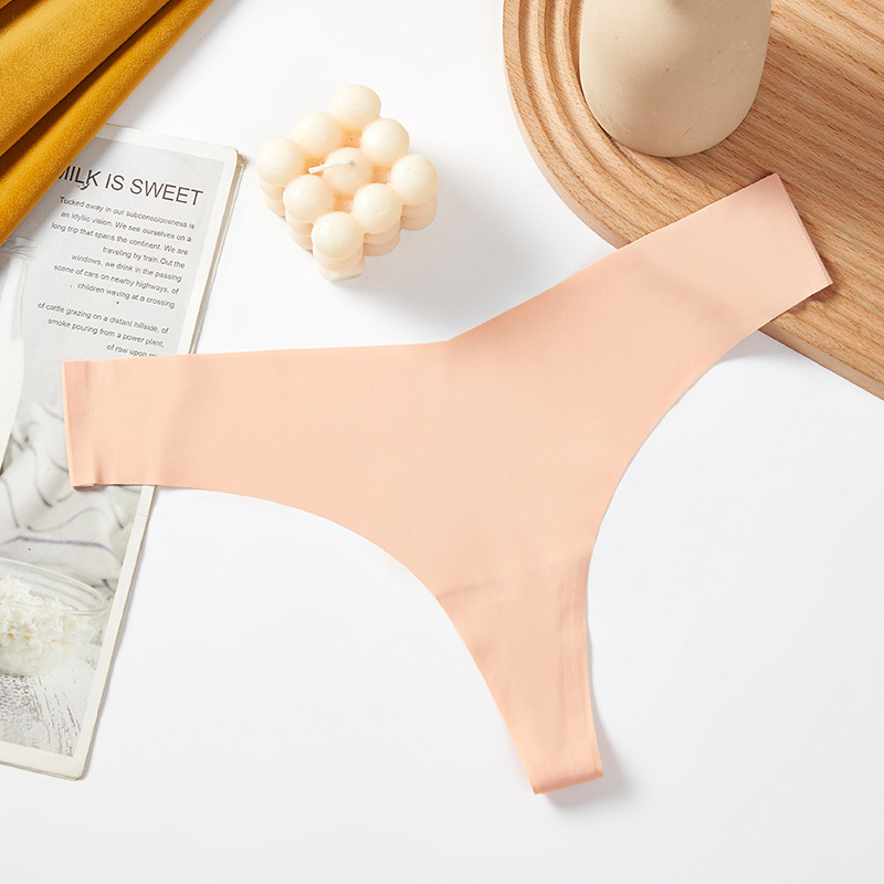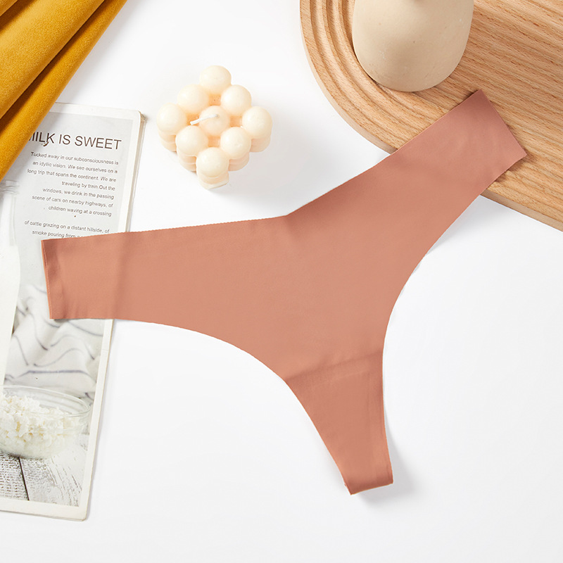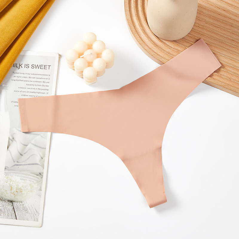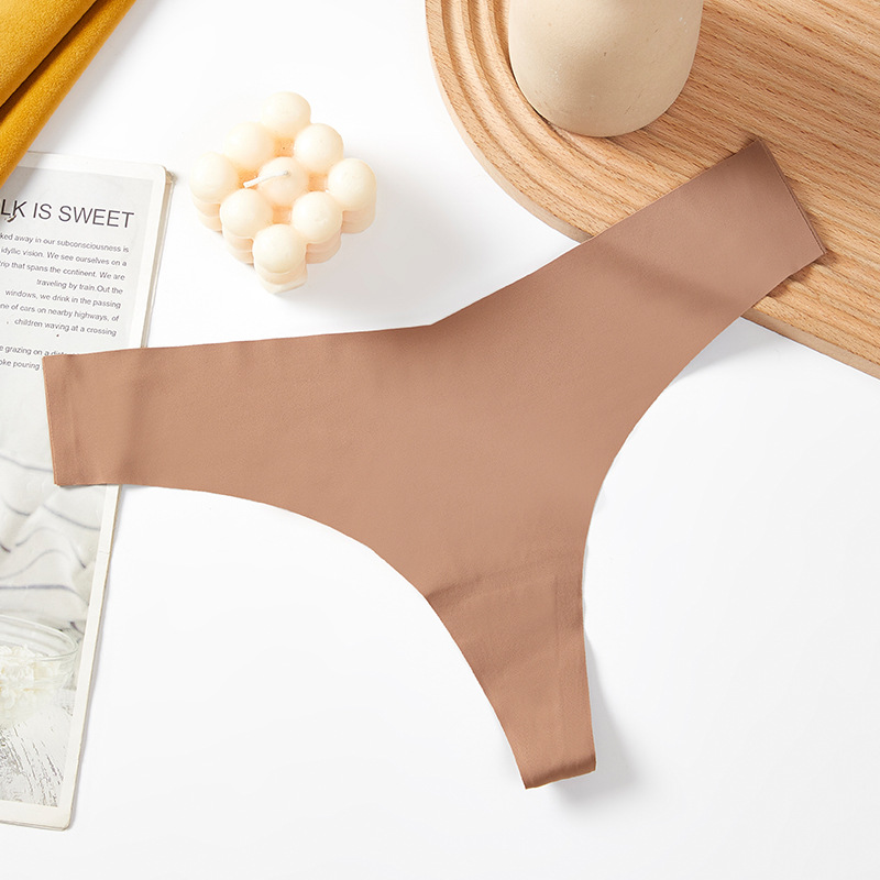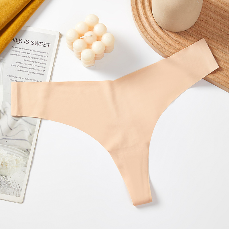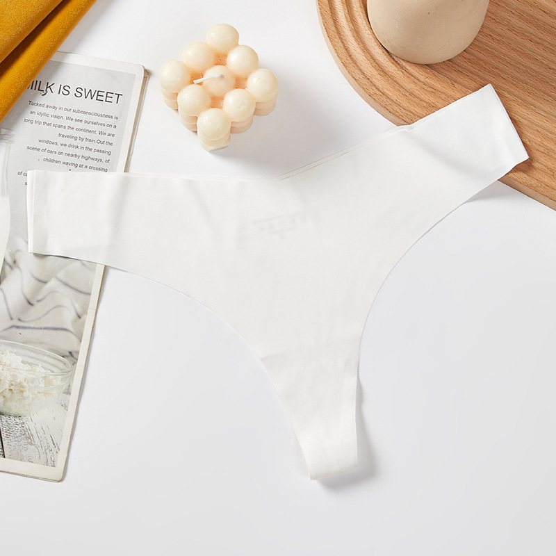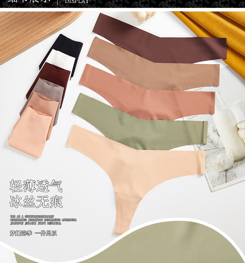 새로운 유럽 및 미국 스타일의 무봉제 여성용 T팬티, 아이스 실크 소재로 누드 느낌, 통기성 좋고 편안하며, 몸매를 잡아주는 힙업 효과, 중간 허리, 일체형, 면 소재스토어 가기