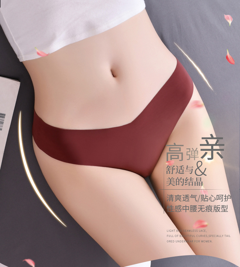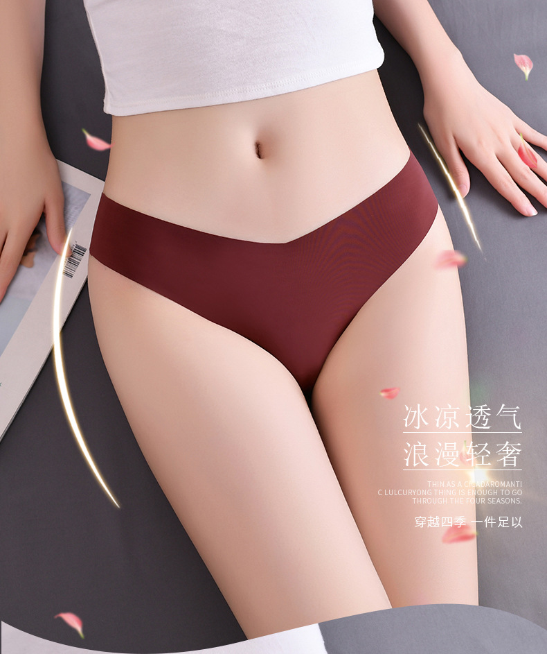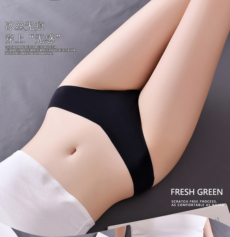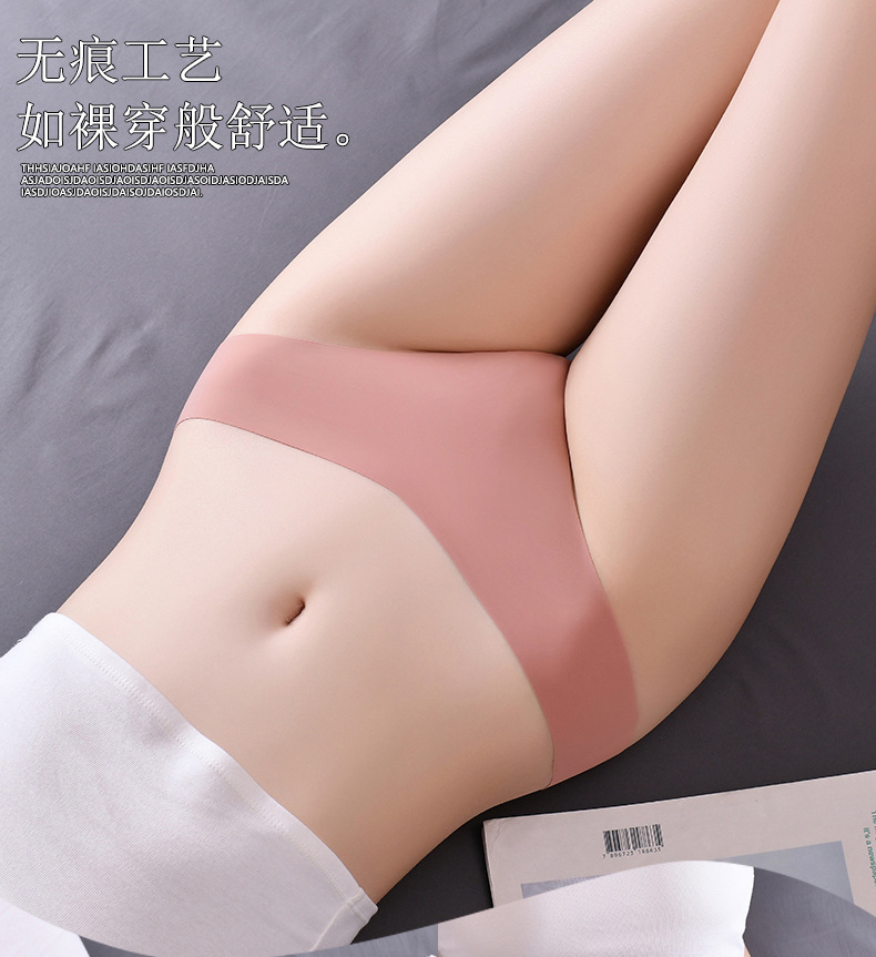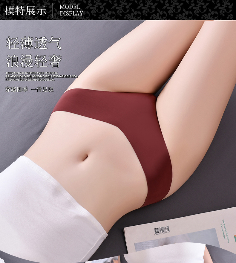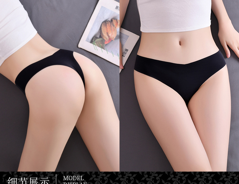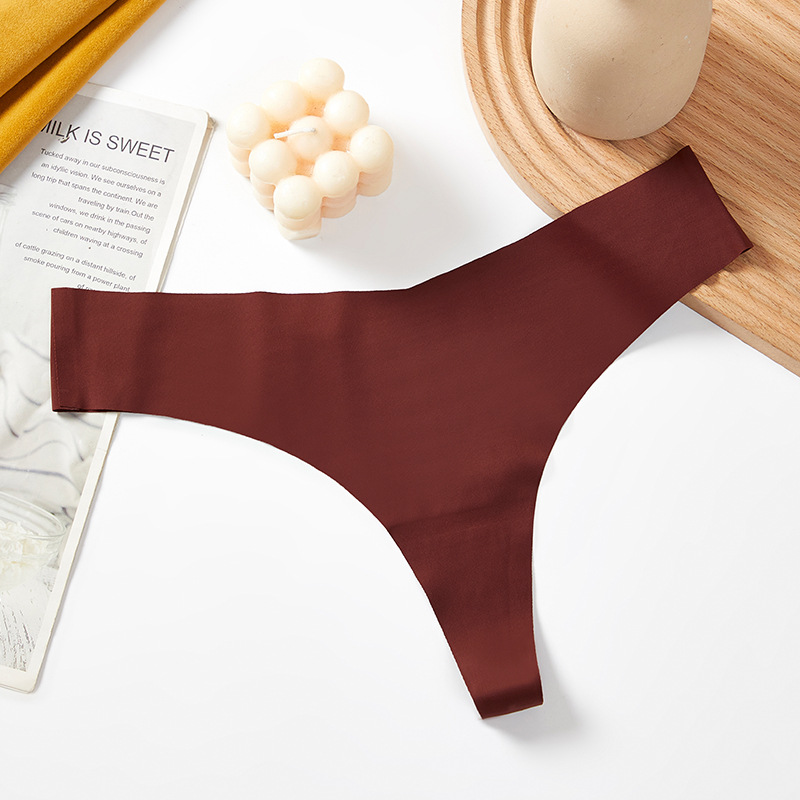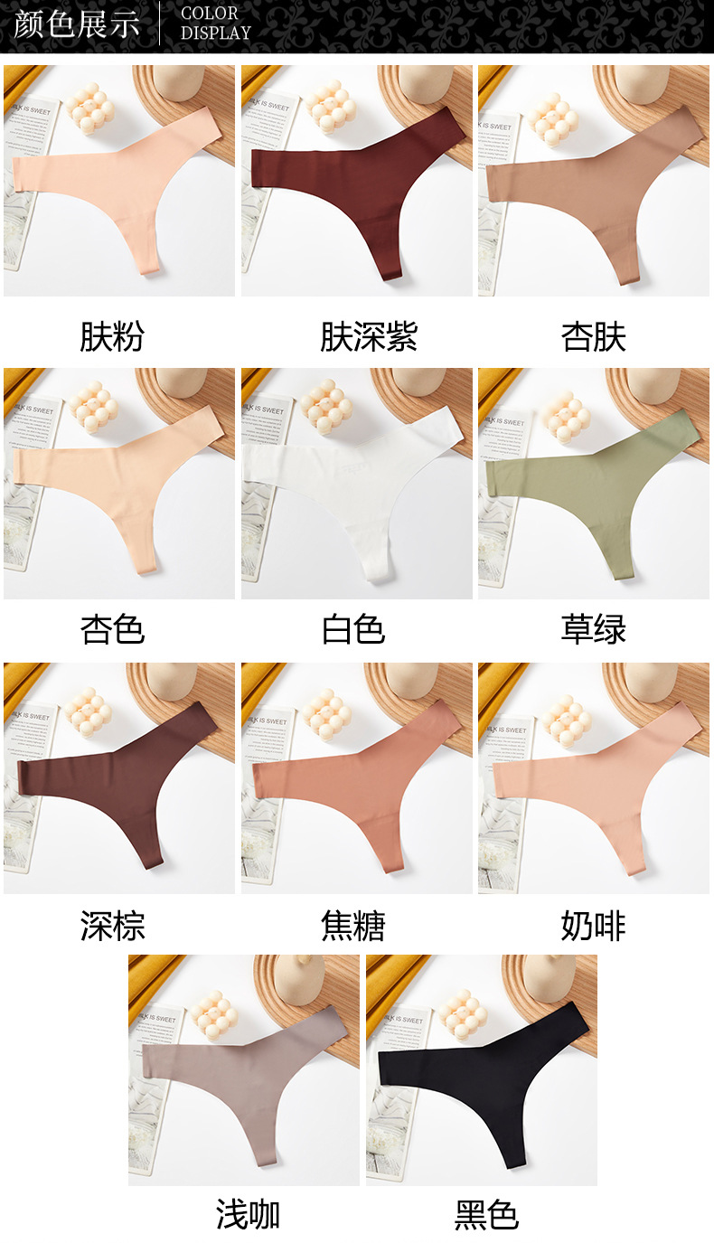 새로운 유럽 및 미국 스타일의 무봉제 여성용 T팬티, 아이스 실크 소재로 누드 느낌, 통기성 좋고 편안하며, 몸매를 잡아주는 힙업 효과, 중간 허리, 일체형, 면 소재스토어 가기
