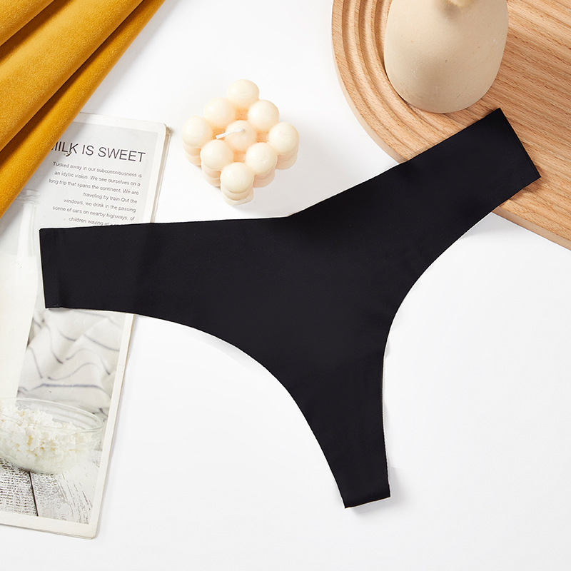 새로운 유럽 및 미국 스타일의 무봉제 여성용 T팬티, 아이스 실크 소재로 누드 느낌, 통기성 좋고 편안하며, 몸매를 잡아주는 힙업 효과, 중간 허리, 일체형, 면 소재