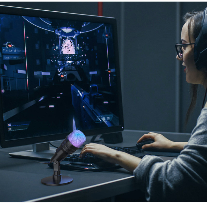 V3Pro 게임 마이크 컴퓨터 라이브 소음 감소 기록 전자 경쟁 RGB 콘덴서 USB 마이크 국경 순수 영어