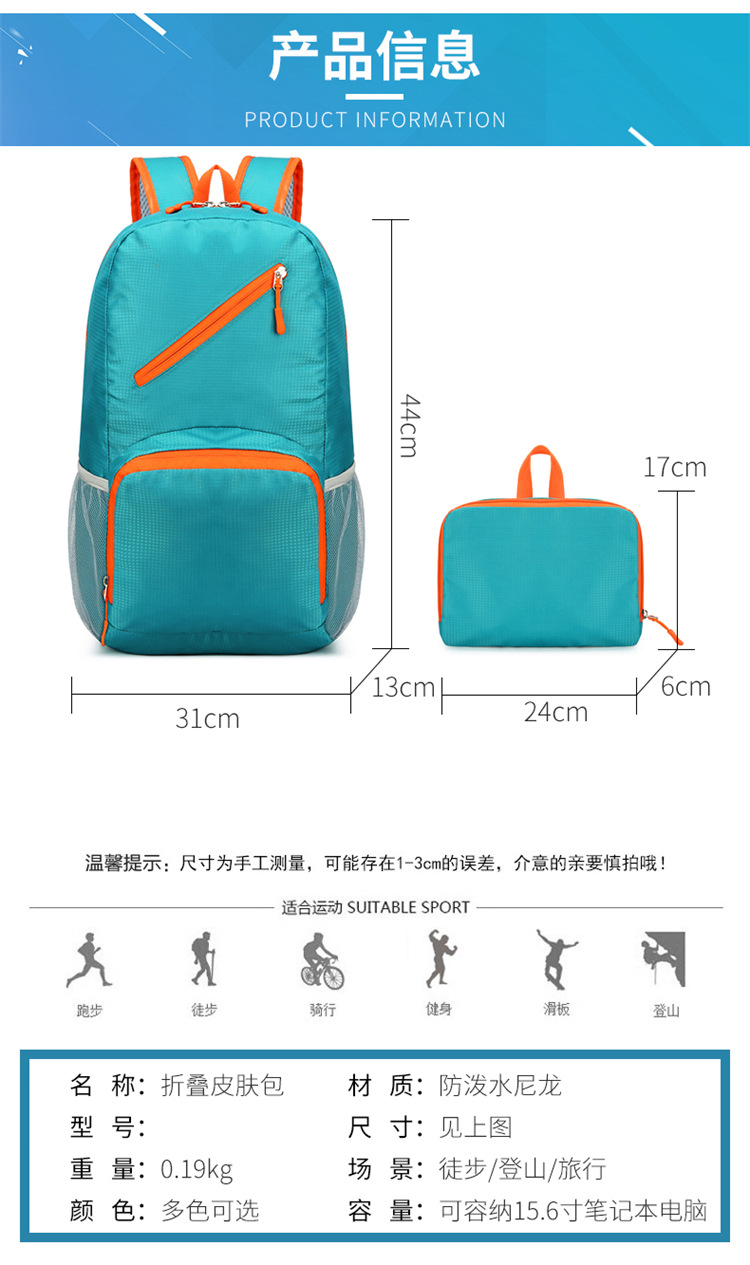 울트라 라이트 야외 여행 가방 스포츠 배낭 남성용 경량 여행 등산 가방 통근 접이식 작은 배낭 여성용 스쿨백