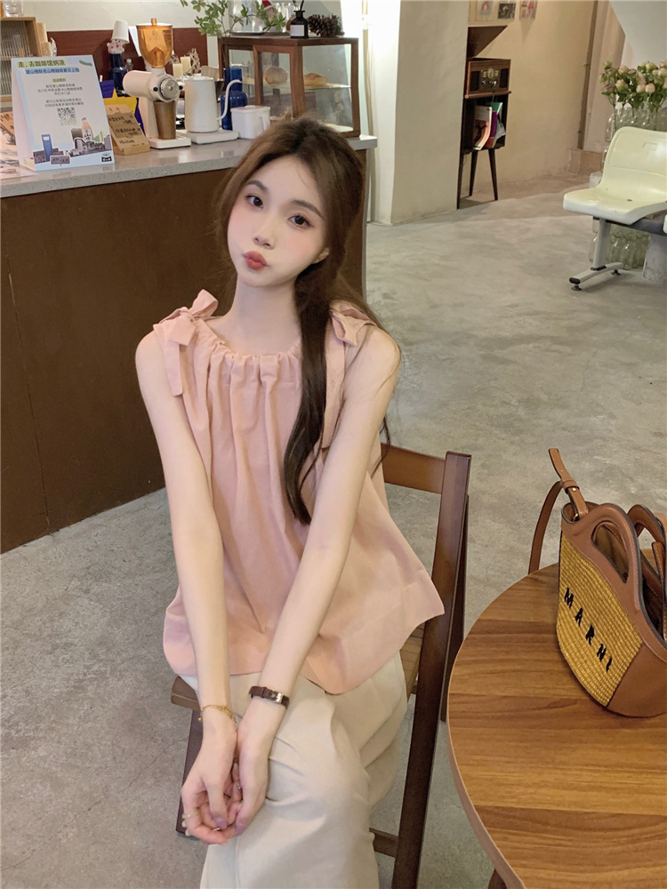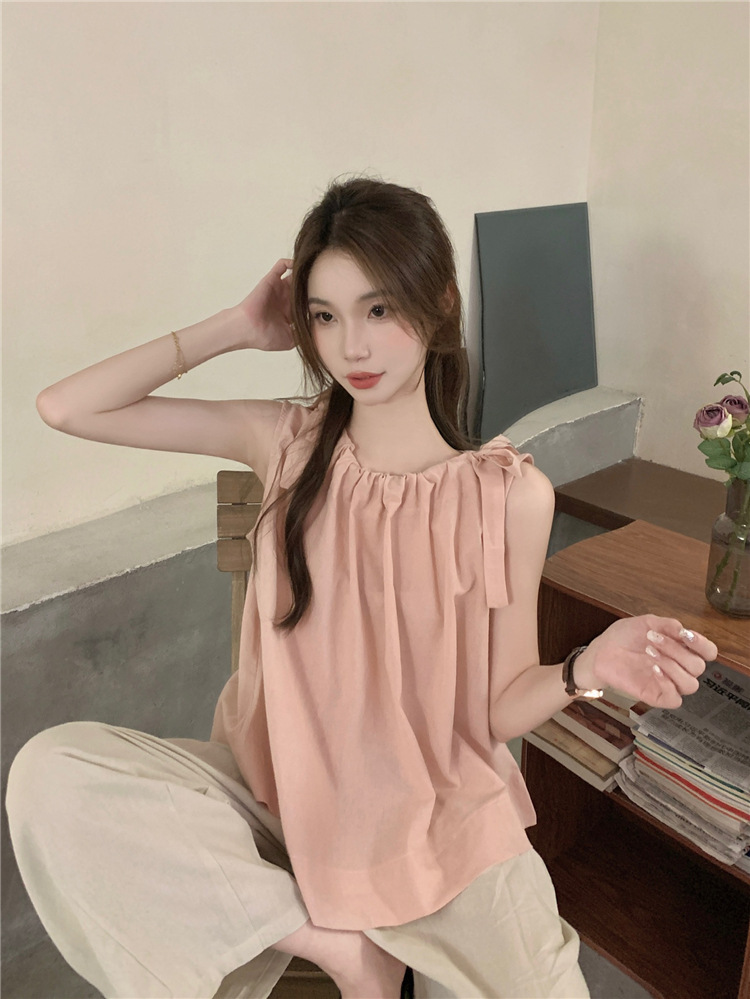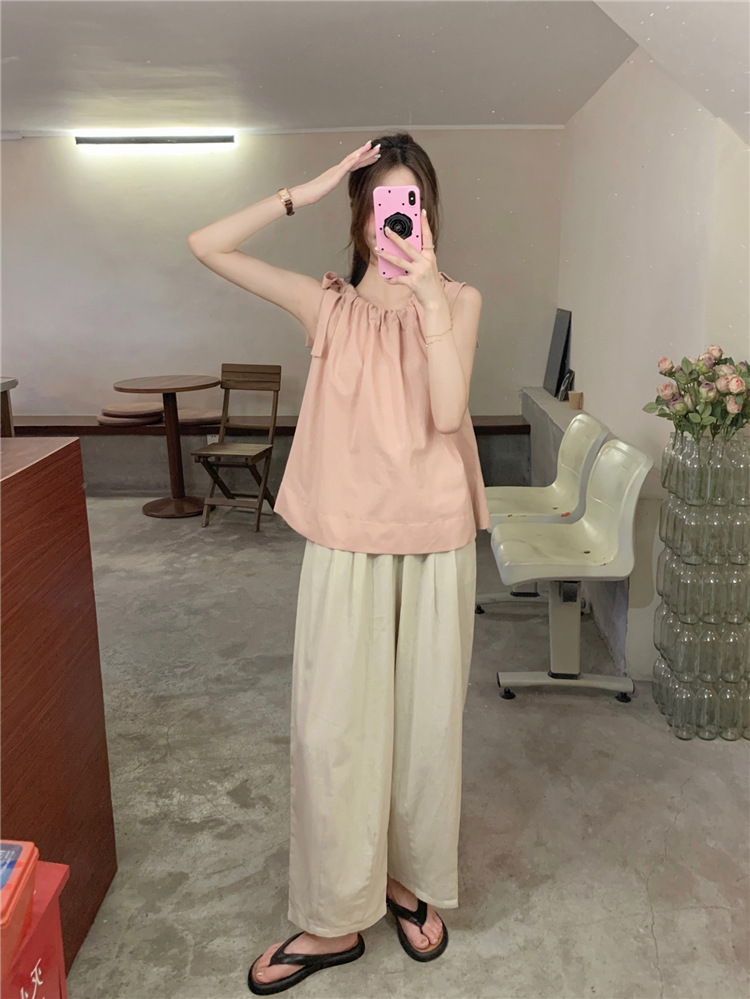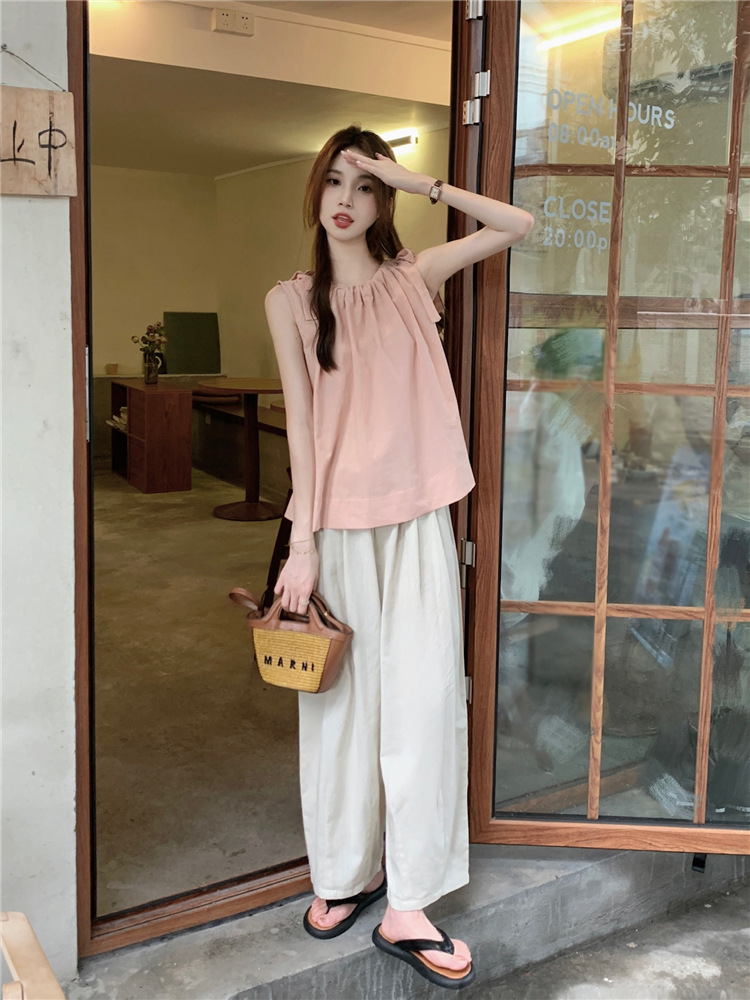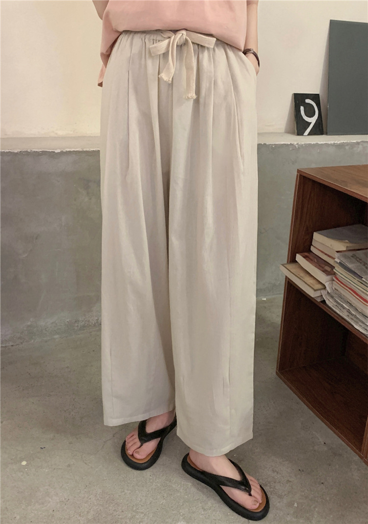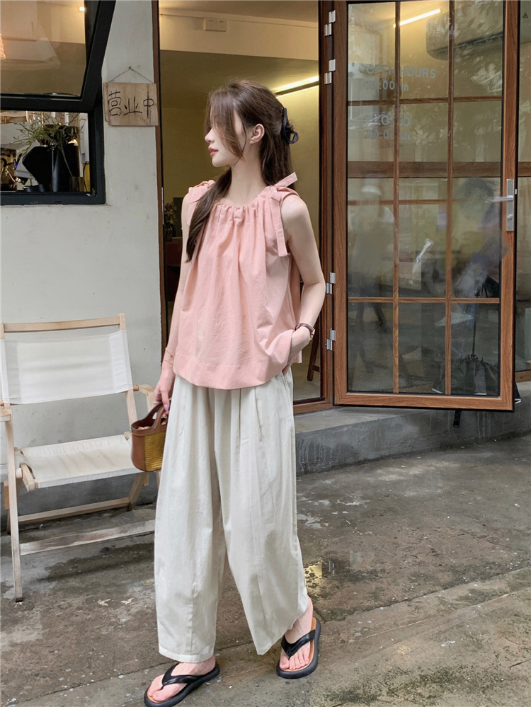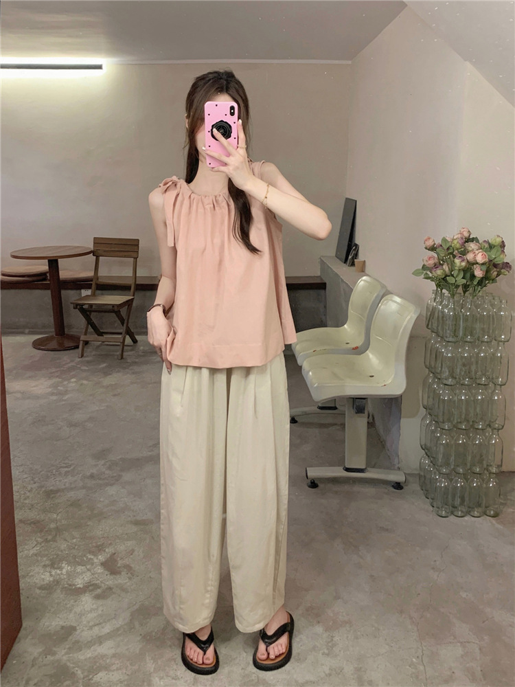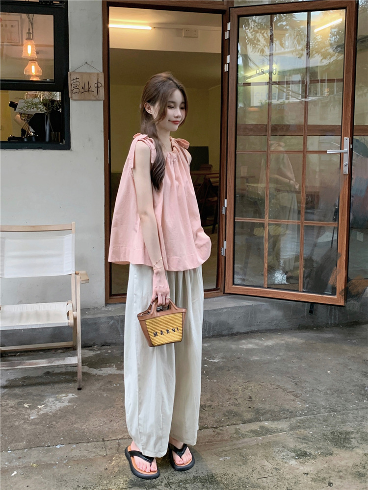 여성용 루즈하고 슬림한 린넨 캐미솔 탑 + 작은 사람들을 위한 다용도 루즈 드로스트링 와이드 팬츠 63411