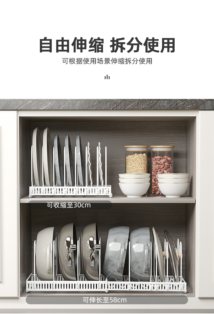 주방 다기능 도마 도마 스토리지 랙 개폐식 냄비 뚜껑 카운터 탑 화이트 미끄럼 방지 냄비 스토리지 랙