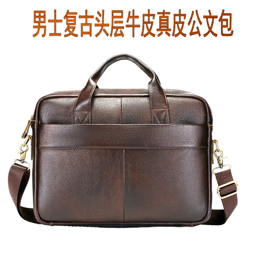 새로운 비즈니스 남성 서류 가방 가죽 복고풍 첫 번째 레이어 소 가죽 컴퓨터 핸드백 비즈니스 서류 가방 도매