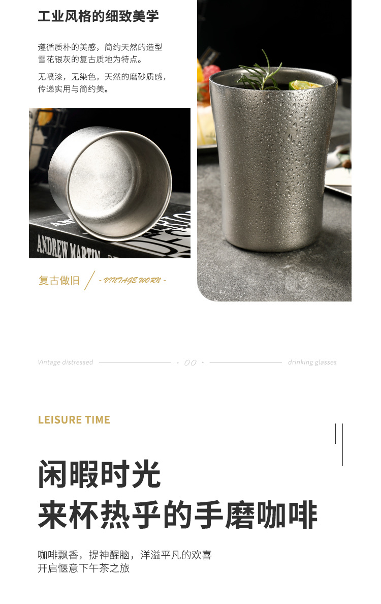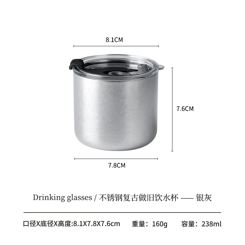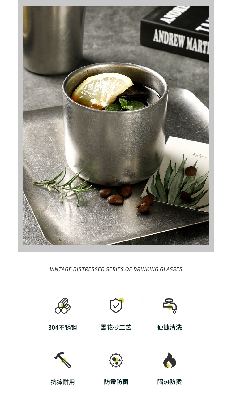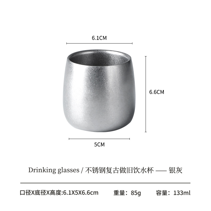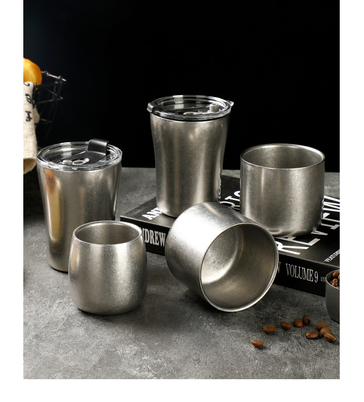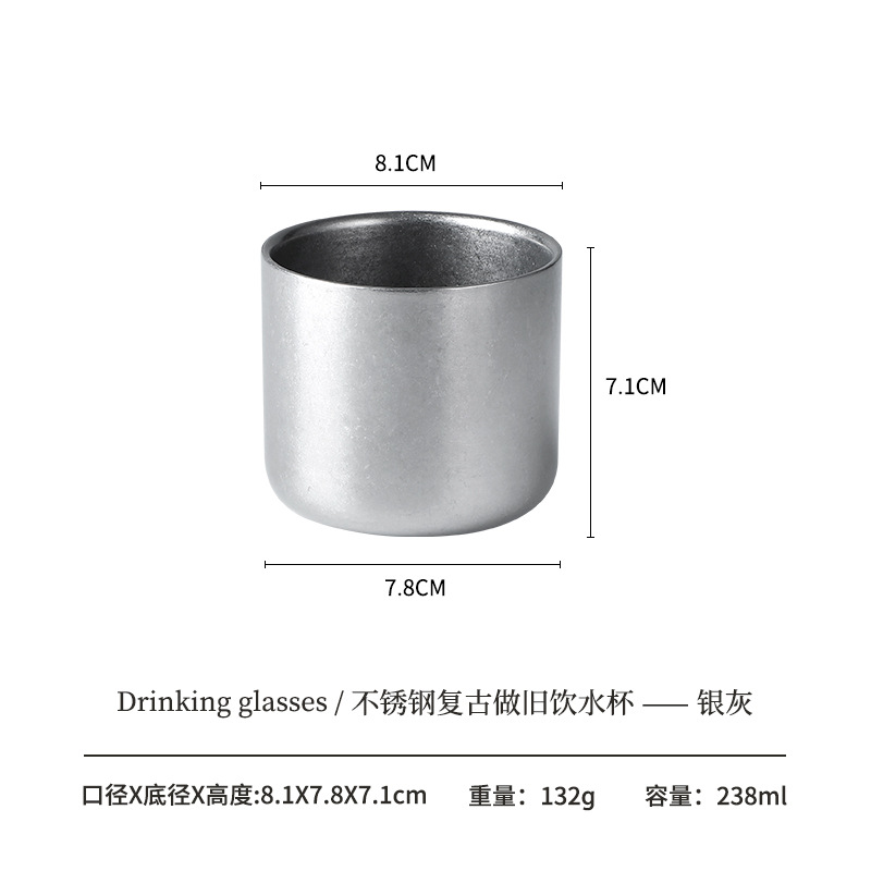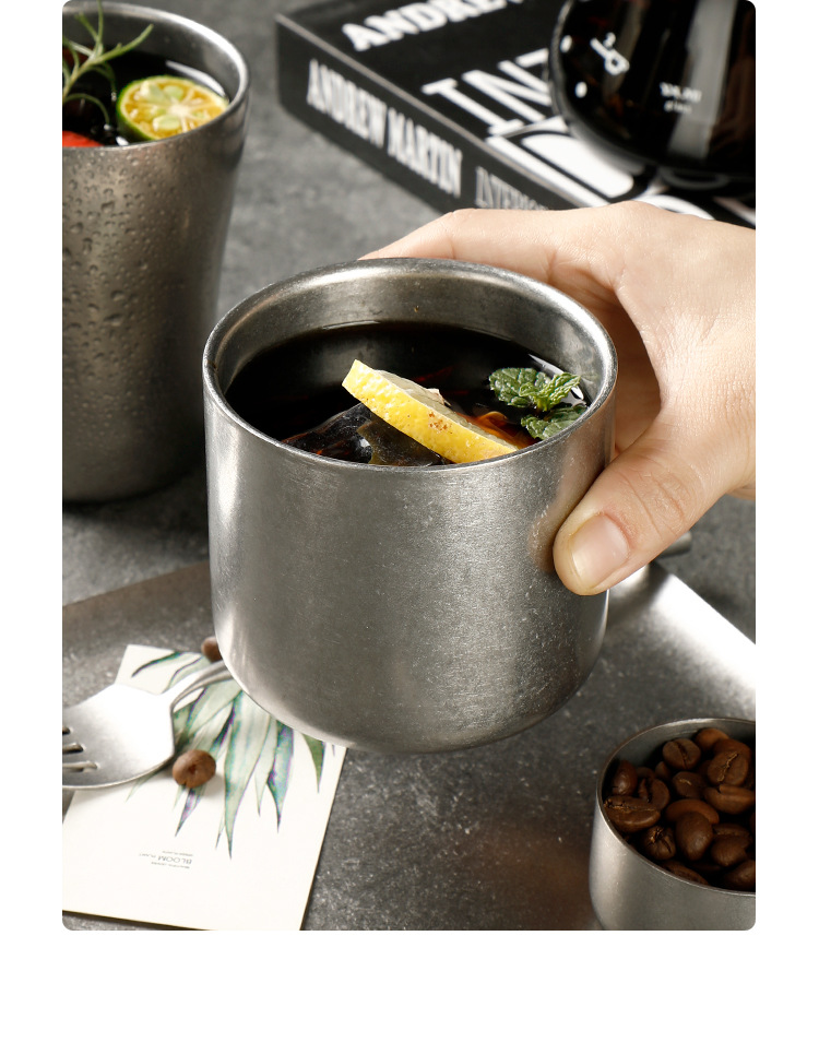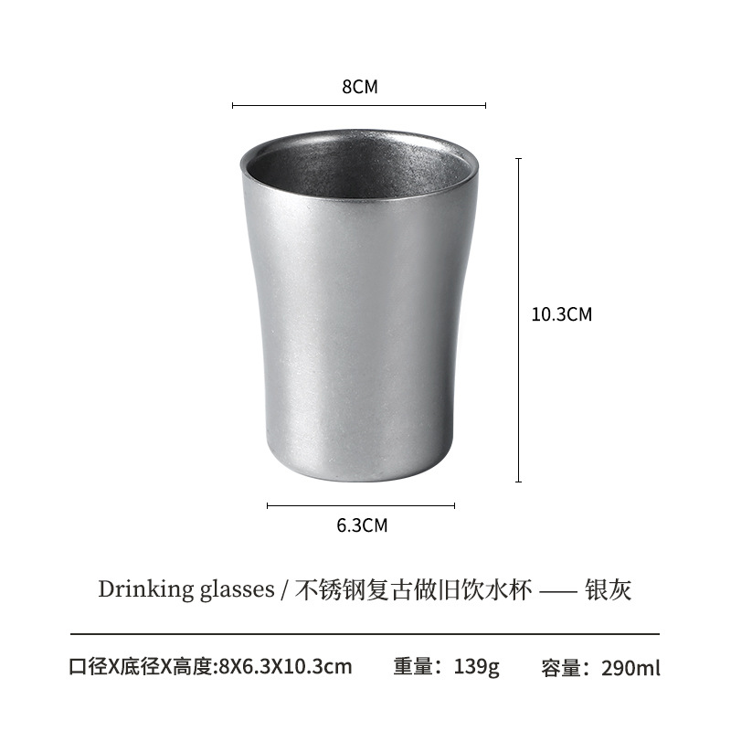 304 더블 레이어 안티 스케일 워터 컵 하이 컬러 가치 레트로 올드 커피 컵 스테인레스 스틸 맥주 컵 레스토랑 야외 캠핑