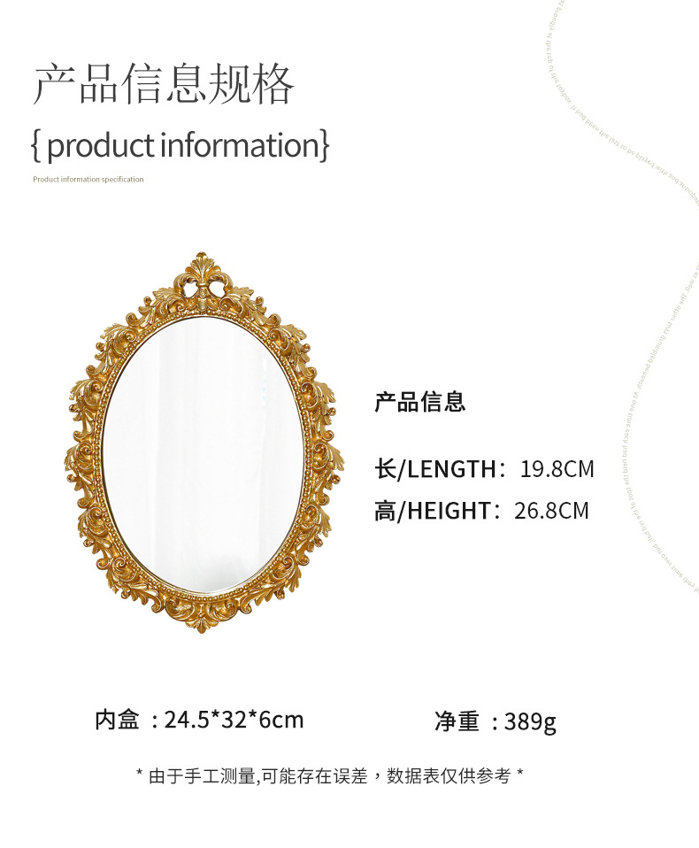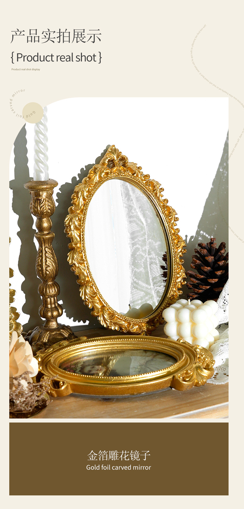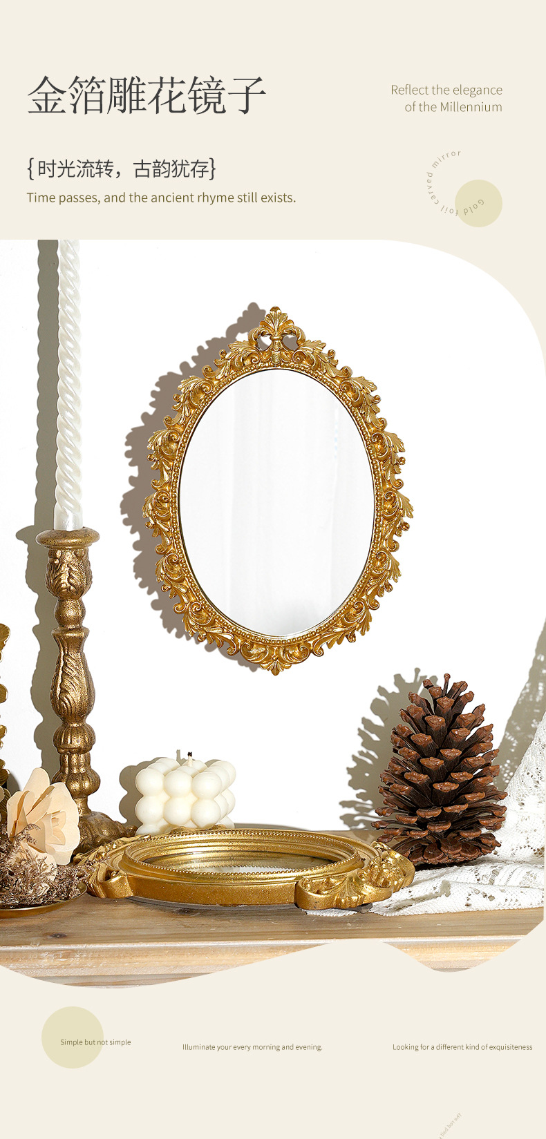 유럽 복고풍 조각 장식 장식품 금박 중공 거울 양각 화장 거울 화장대 거울 장식 벽걸이 거울