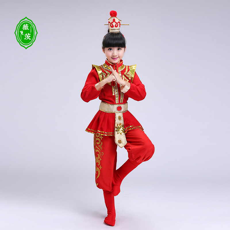 어린이 뮬란 의상 소년 소녀 드럼 고대 군인 의상 중국 스타일 한 의상 뮬란 댄스 의상