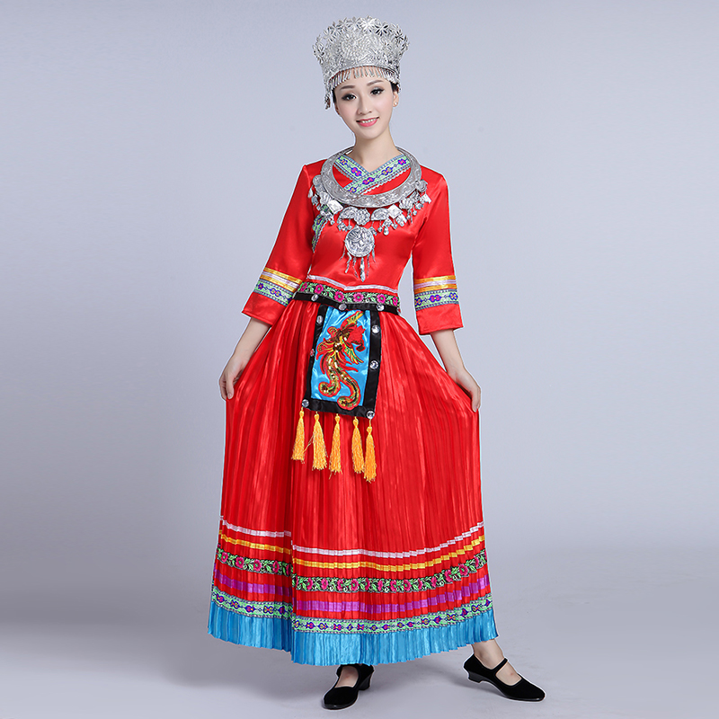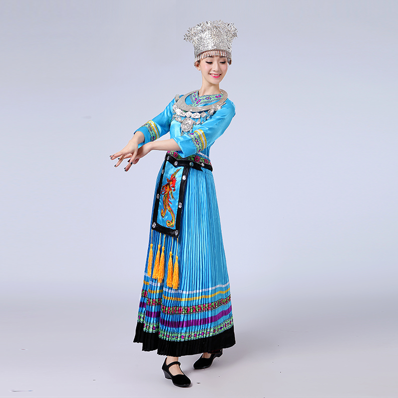새로운 Miao 의상 여성 성인 댄스 공연 의상 윈난 소수 Xiangxi Zhuang 공연 의상
