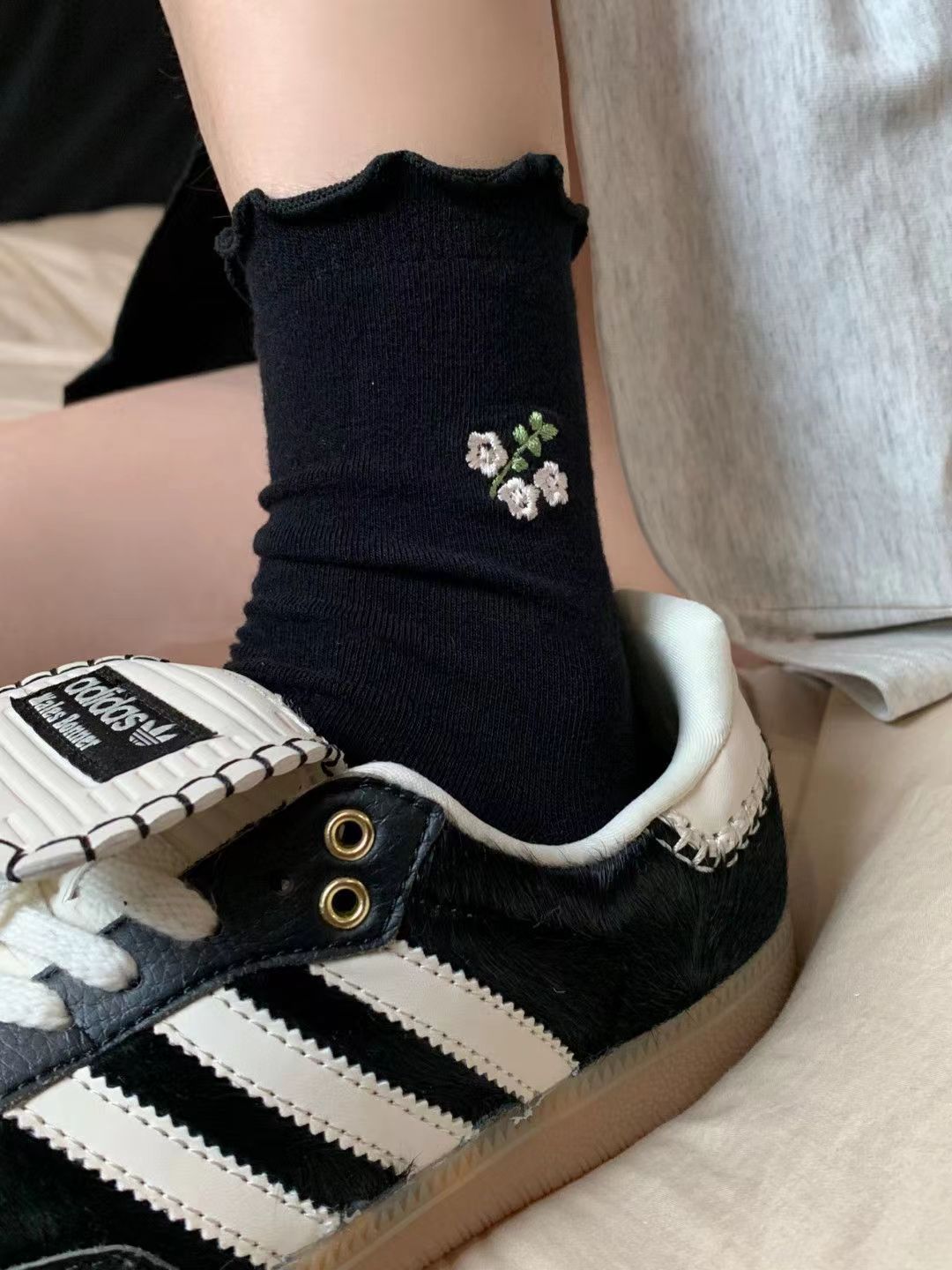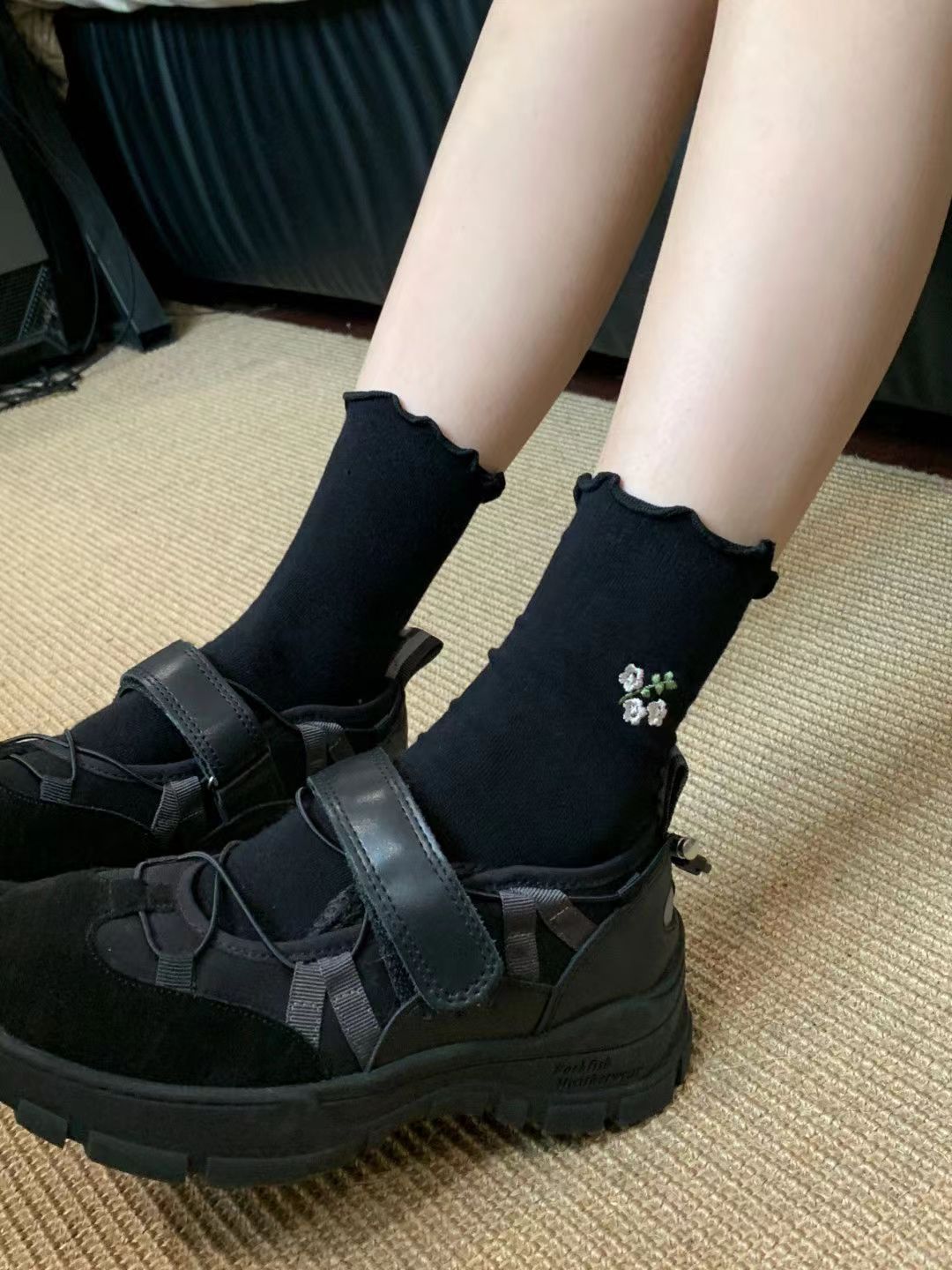 봄여름 꽃무늬 단색 컬 양말, 귀엽고 장난스러운 레이스 종아리 양말, 크림색 땀흡수 양말스토어 가기