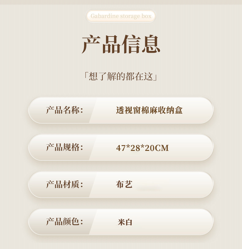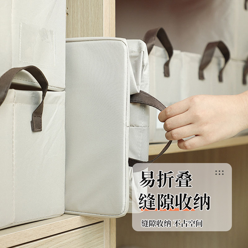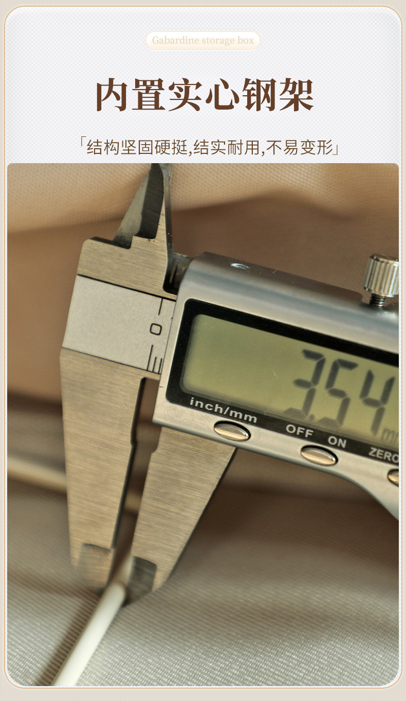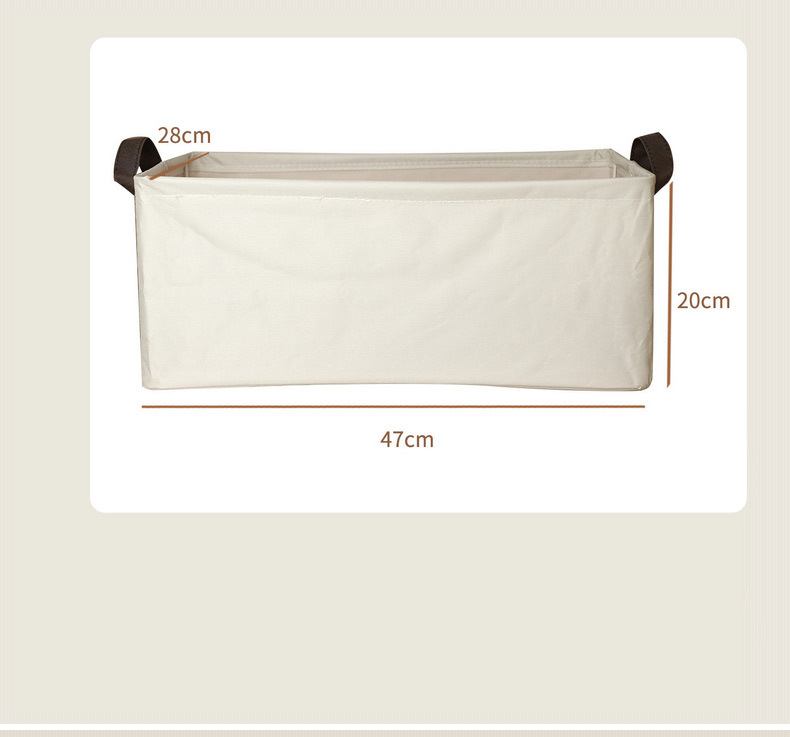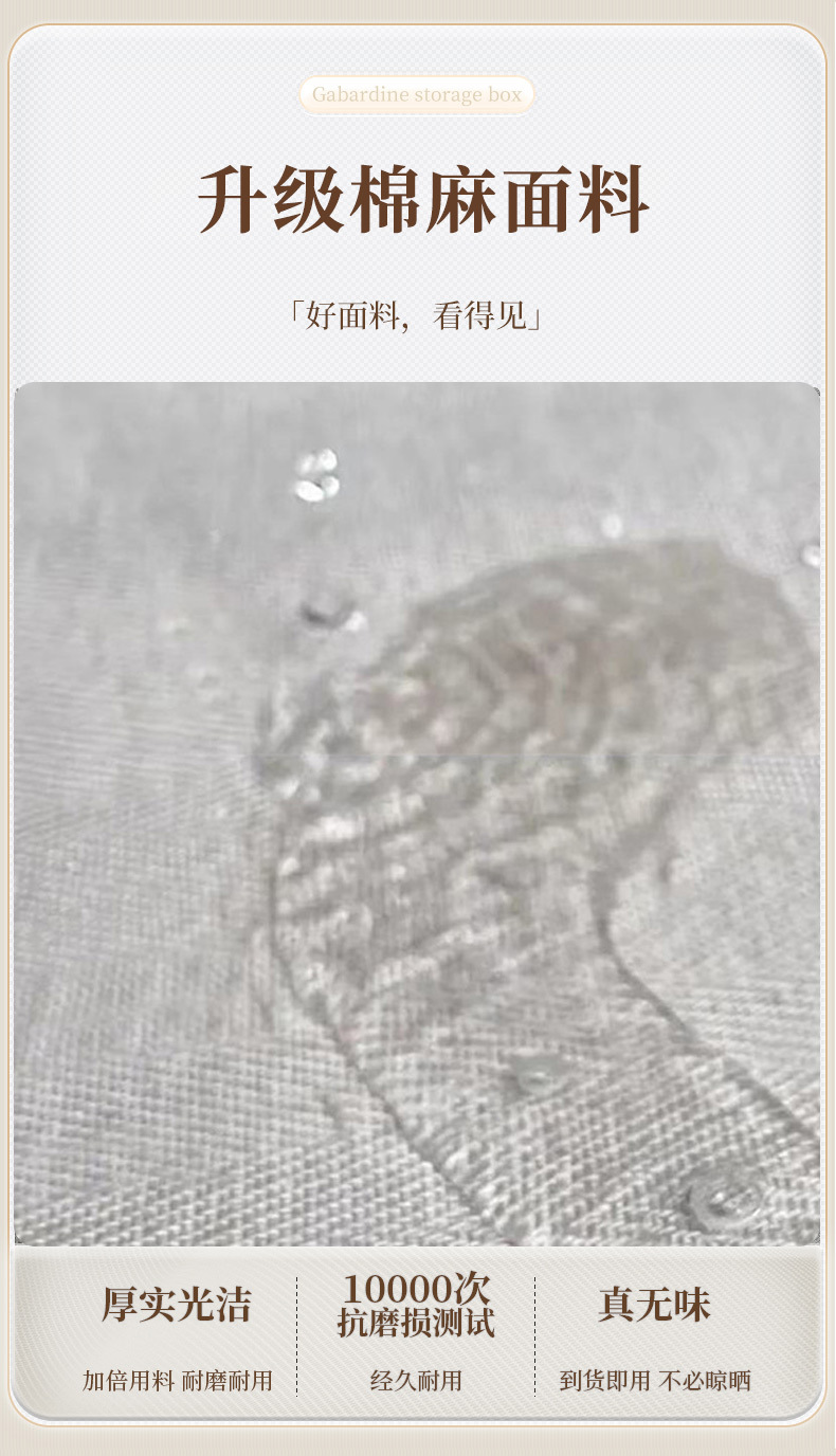 这款华达呢防水面料衣裤折叠收纳盒,尺寸:47X28X20CM;平时放于室内收纳衣物、裤子、书籍等一些生活用品;使房间内杂乱无章的场面瞬间整齐规划;同时平时难找的想穿的衣裤可以随时找到,方便生活,节省时间!材料是精致上档次的华达呢面料,里面带防水涂层、喷塑钢架,底部是结实牢固密度板,两边带喷塑钢架支撑;带结实的手提;不用时可以折叠存放,节省室内空间;整体质量牢固,经济实用,防水、耐脏、易打理;尤其价格实惠,欢迎选购!