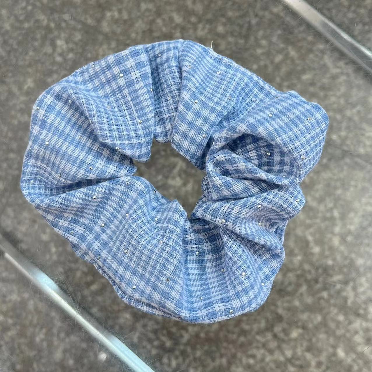 에서 한국 동대문 디자이너 프랑스 스타일 빈티지 격자 무늬 광장 대형 그릇 헤어 밴드 헤어 로프 고무 로프 로프