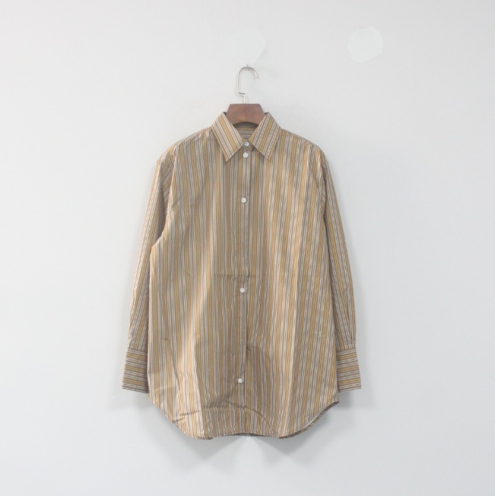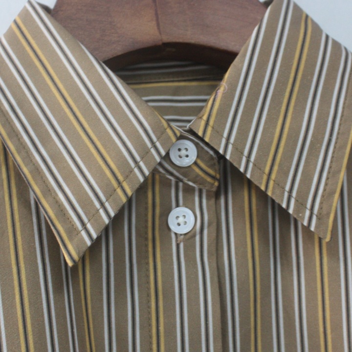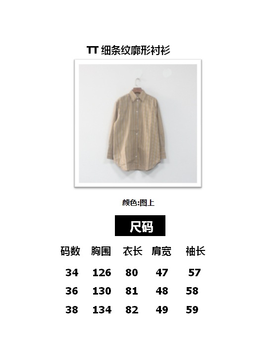 TT2024 봄과 여름 새로운 캐주얼 통근 진한 베이지 컬러 컬러 컬러 핀스트라이프 프로필 셔츠 최고 여성스토어 가기