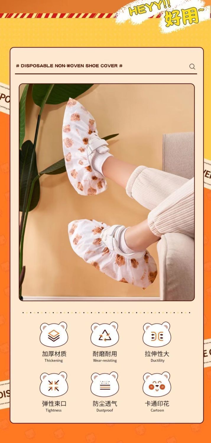 부직포 두껍게 인쇄 된 신발 커버 빨 수 없는 미끄럼 방지 성인 발 커버 신발 커버 일회용 신발 커버 실내 가정용 신발 커버