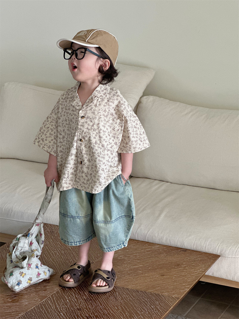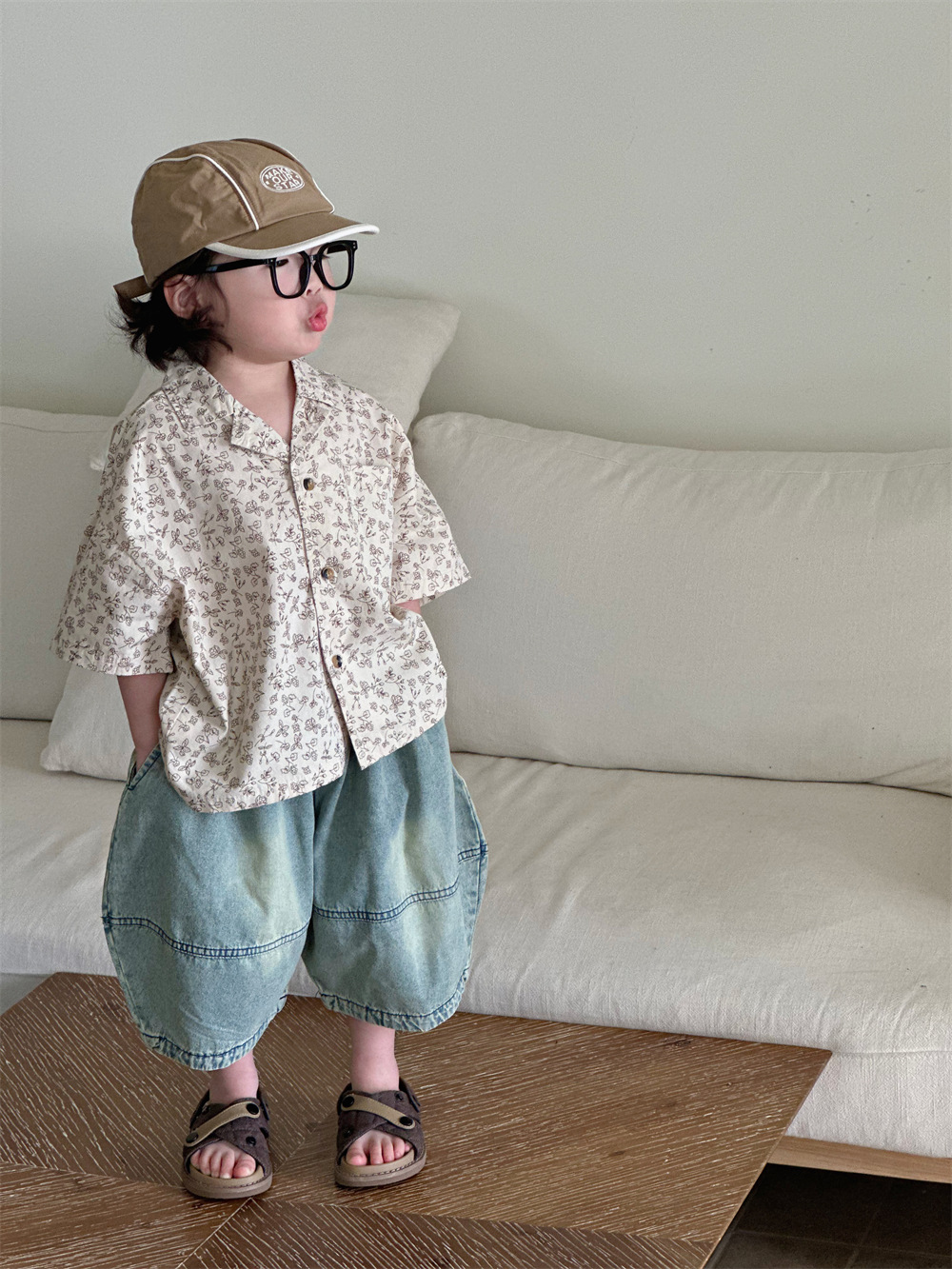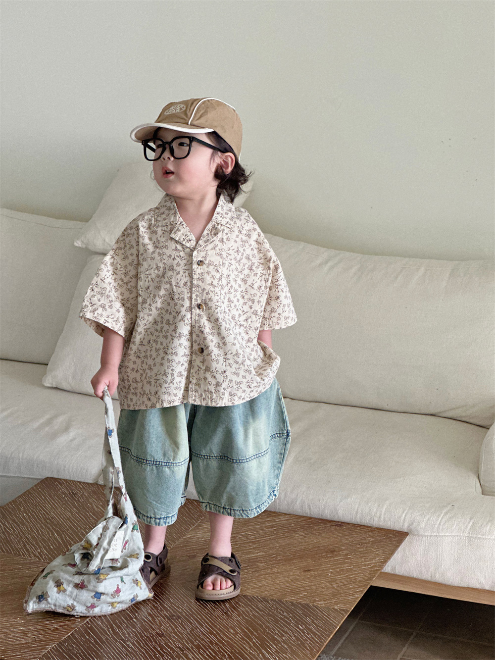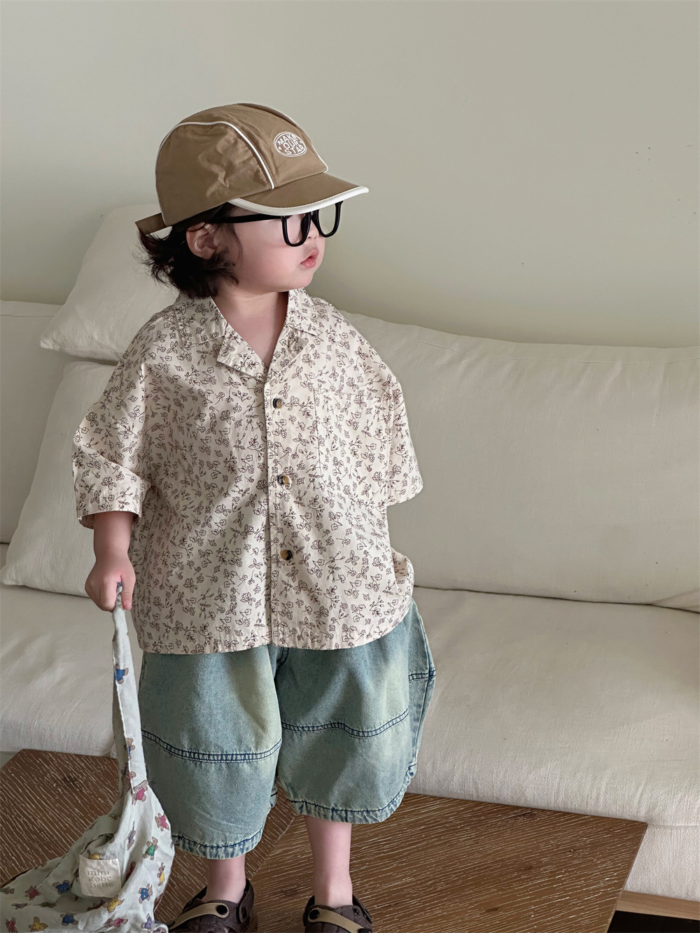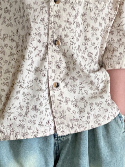 몽테뉴면 꽃 반팔 어린이 셔츠 2024 새로운 한국 스타일 소년 아동복 아기 캐주얼 팬 홍콩 스타일 탑스토어 가기