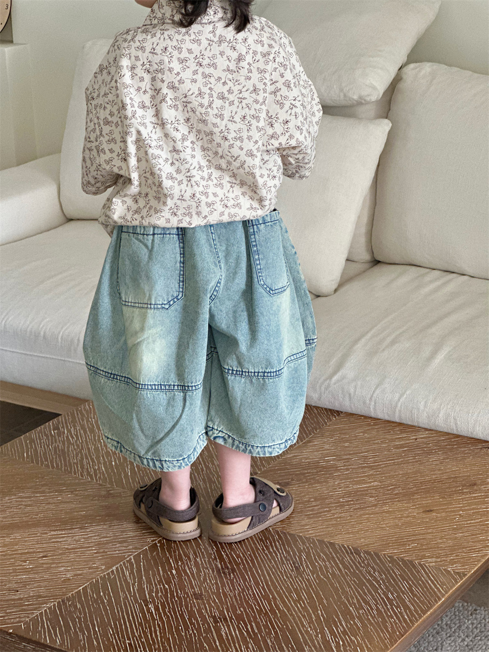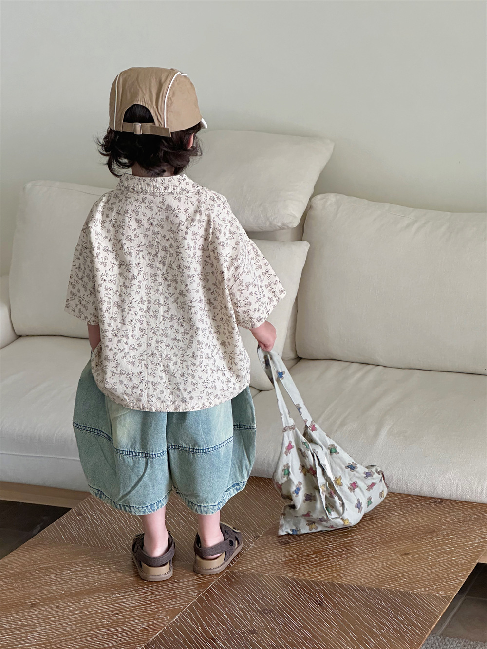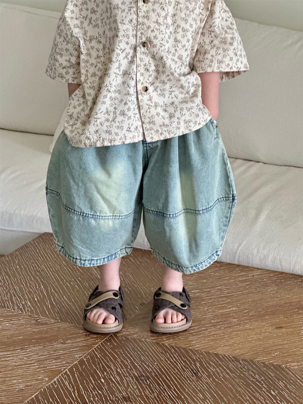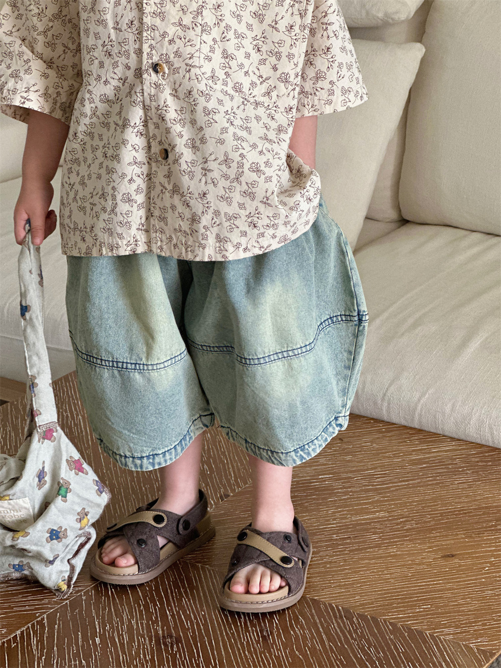 몽테뉴면 꽃 반팔 어린이 셔츠 2024 새로운 한국 스타일 소년 아동복 아기 캐주얼 팬 홍콩 스타일 탑스토어 가기