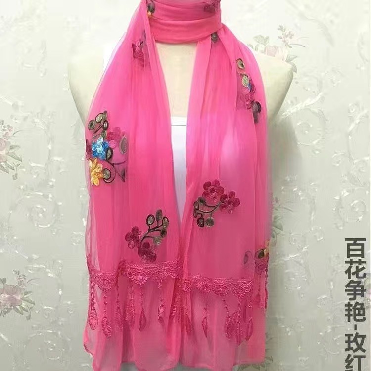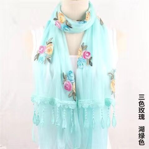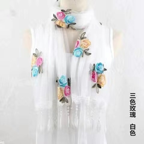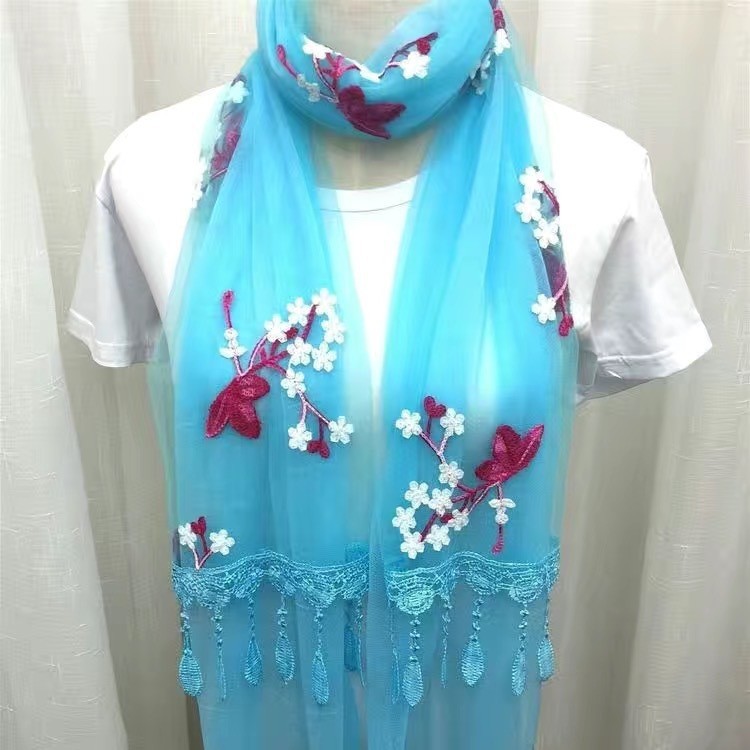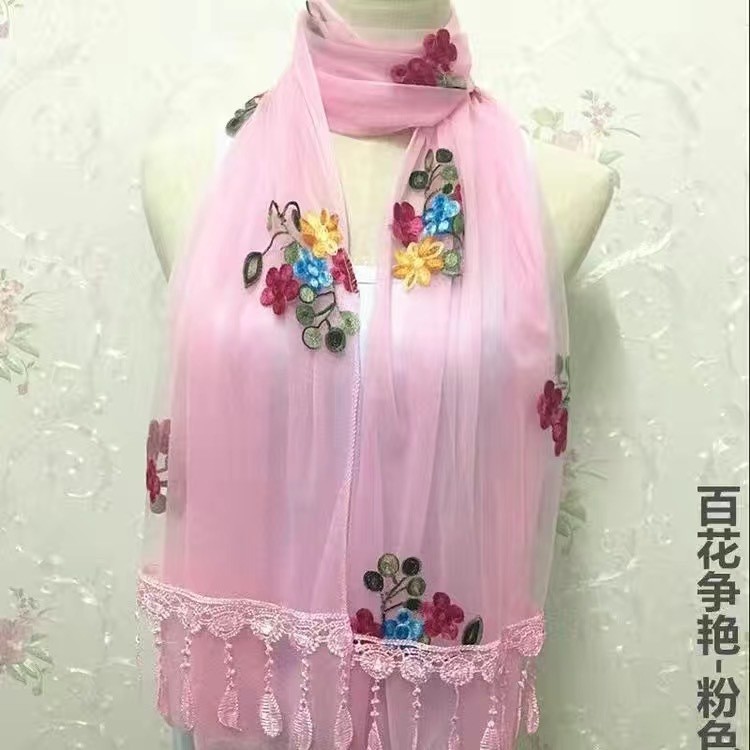 봄과 여름 한국 스타일 스카프 여성 실크 스카프 수 놓은 스카프 가을과 겨울 더블 스티칭 레이스 단색 스카프 여성