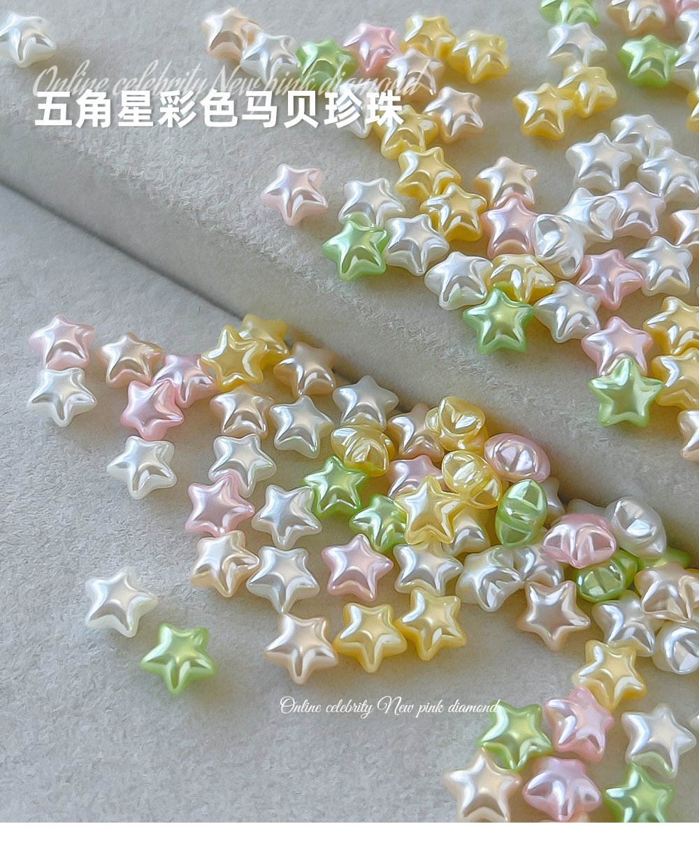 새로운 모양의 진주 네일 쥬얼리 다섯개 별 색 마베이 진주 여름 아름다운 소녀 네일 액세서리 도매스토어 가기