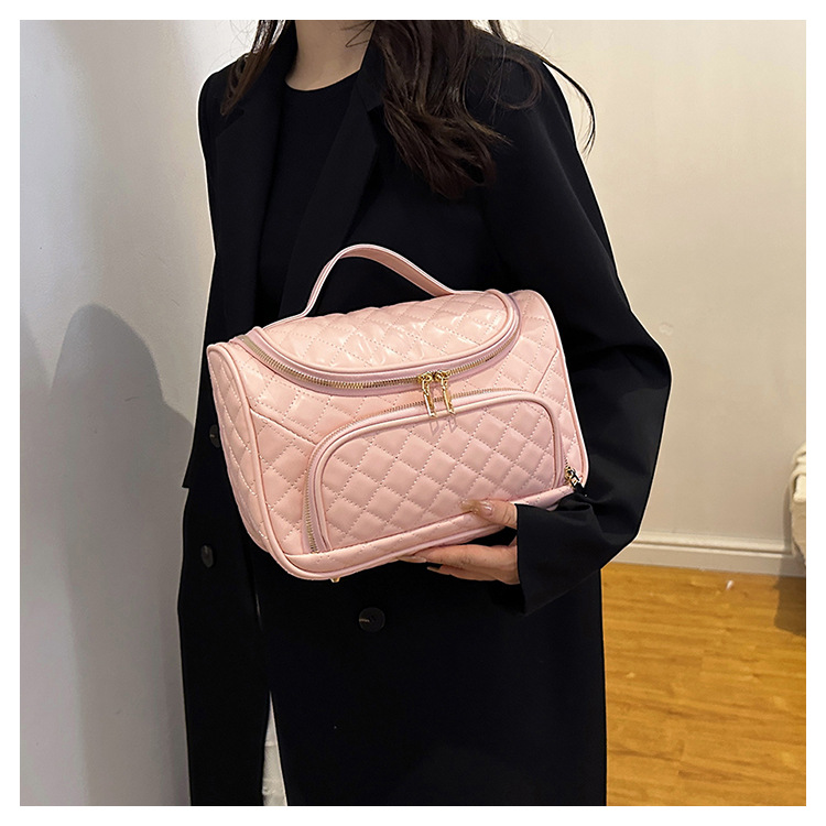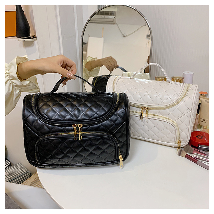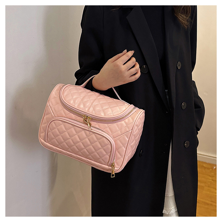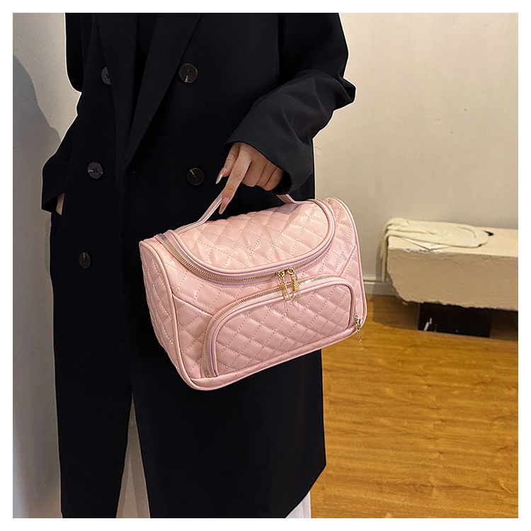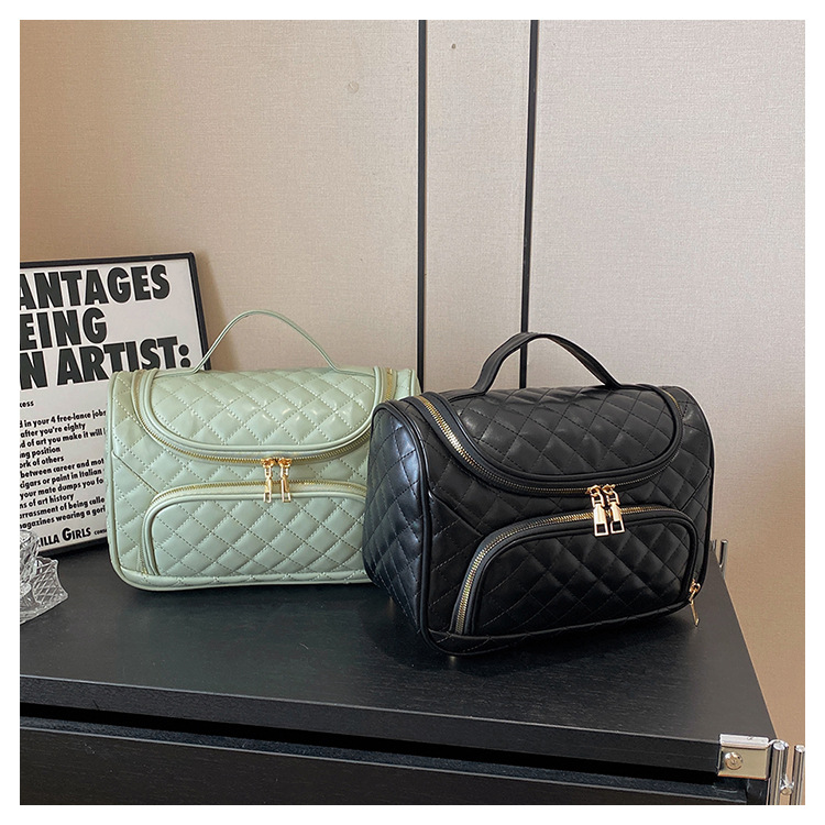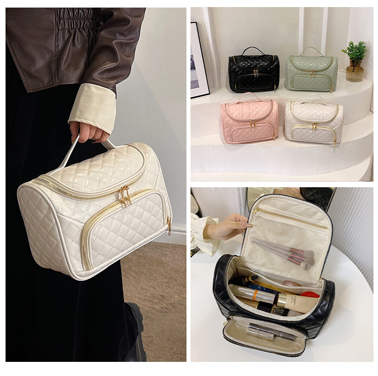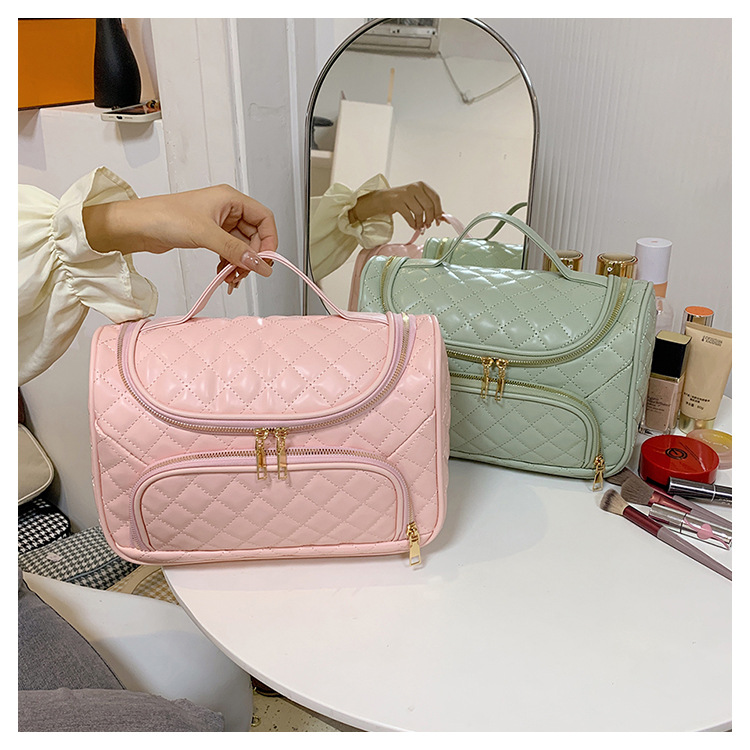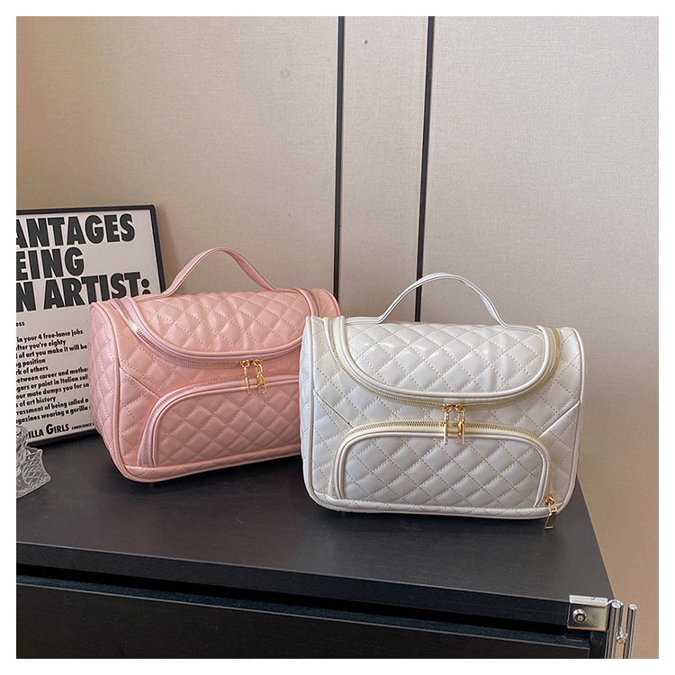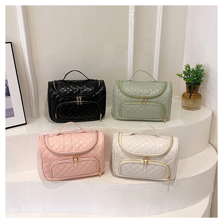 세면도구 수납 가방, 크로스보더 마름모 무늬 화장품 가방, 신형 휴대용 고급 다기능 수납 여행 세면도구 가방