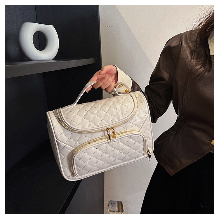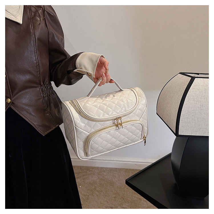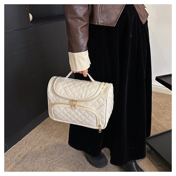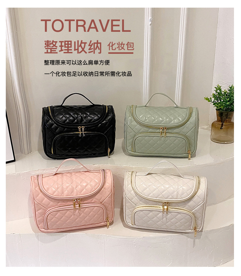 세면도구 수납 가방, 크로스보더 마름모 무늬 화장품 가방, 신형 휴대용 고급 다기능 수납 여행 세면도구 가방스토어 가기