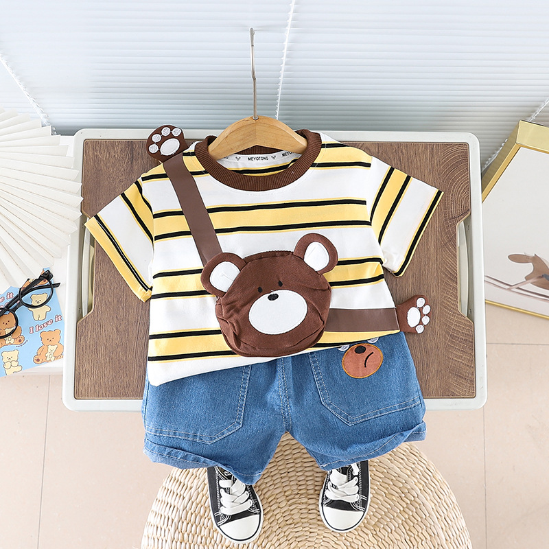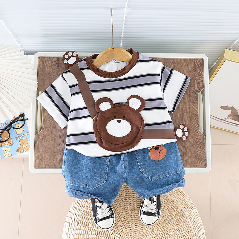아동복 소년의 여름 착용 줄무늬 세트 2024 새로운 스포츠 여름 소년의 얇은 여름 투피스 세트스토어 가기