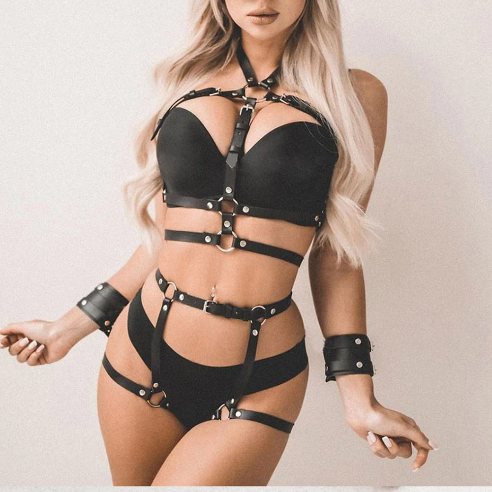 유럽과 미국 국경 핫 섹시한 패션 가죽 속박 의류 SM 재미 바인딩 벨트 다리 링 가슴 벨트 나이트 클럽 액세서리스토어 가기