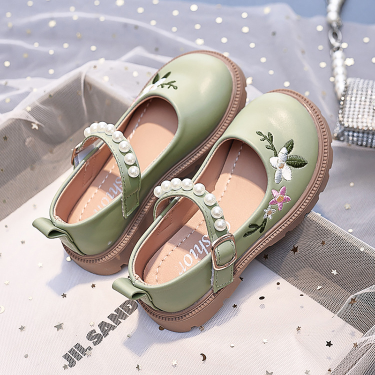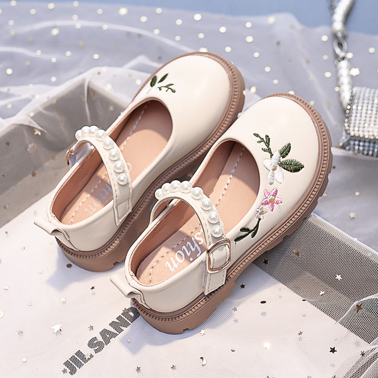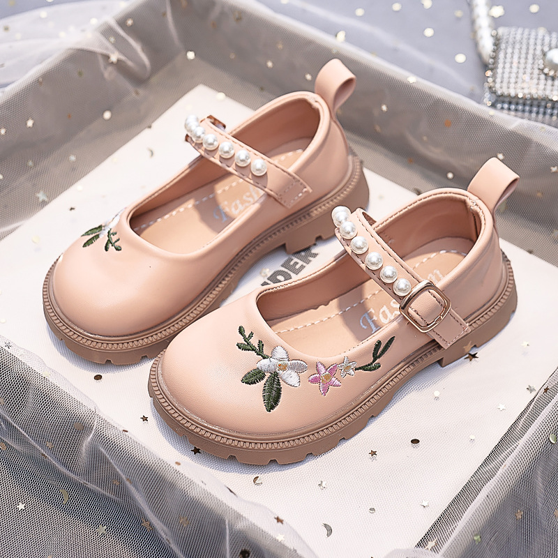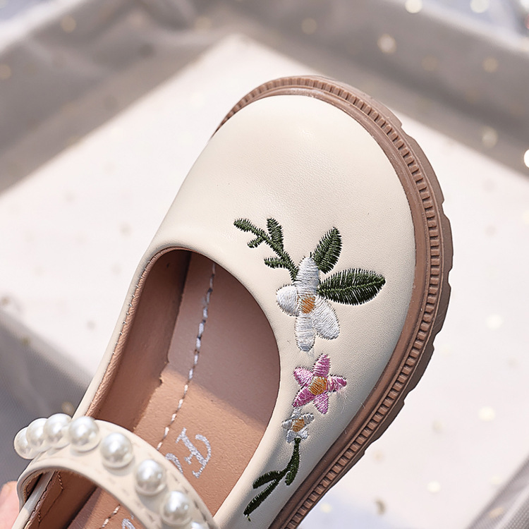 여자 공주 작은 가죽 신발 2025 가을 꽃 민족 스타일 댄스 신발 자수 어린이 신발 큰 어린이 소녀 신발