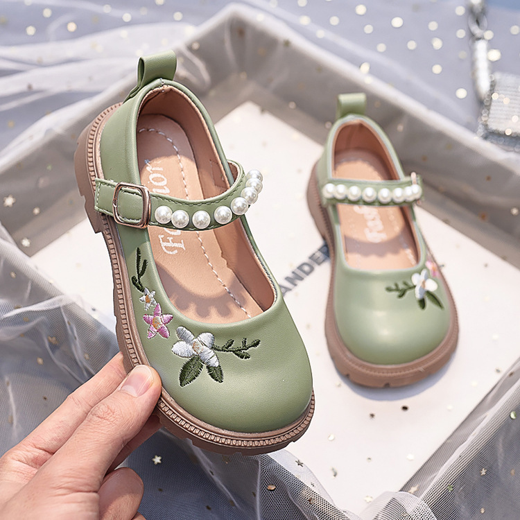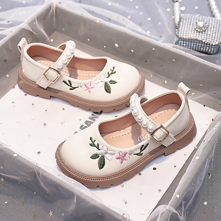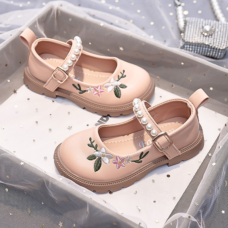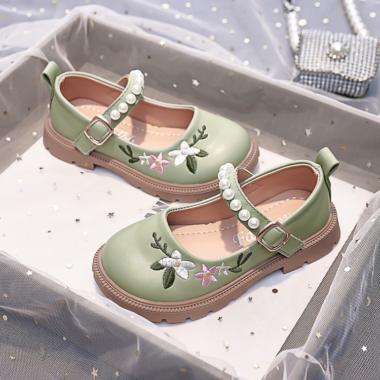여자 공주 작은 가죽 신발 2025 가을 꽃 민족 스타일 댄스 신발 자수 어린이 신발 큰 어린이 소녀 신발스토어 가기
