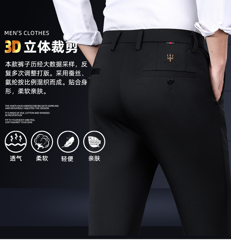 멀 베리 실크 라이트 럭셔리 남성 캐주얼 바지 봄과 여름 얇은 스트레이트-스루 솔리드 컬러 비즈니스 바지 통기성 긴 바지 남성스토어 가기