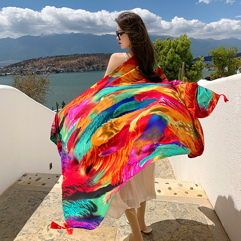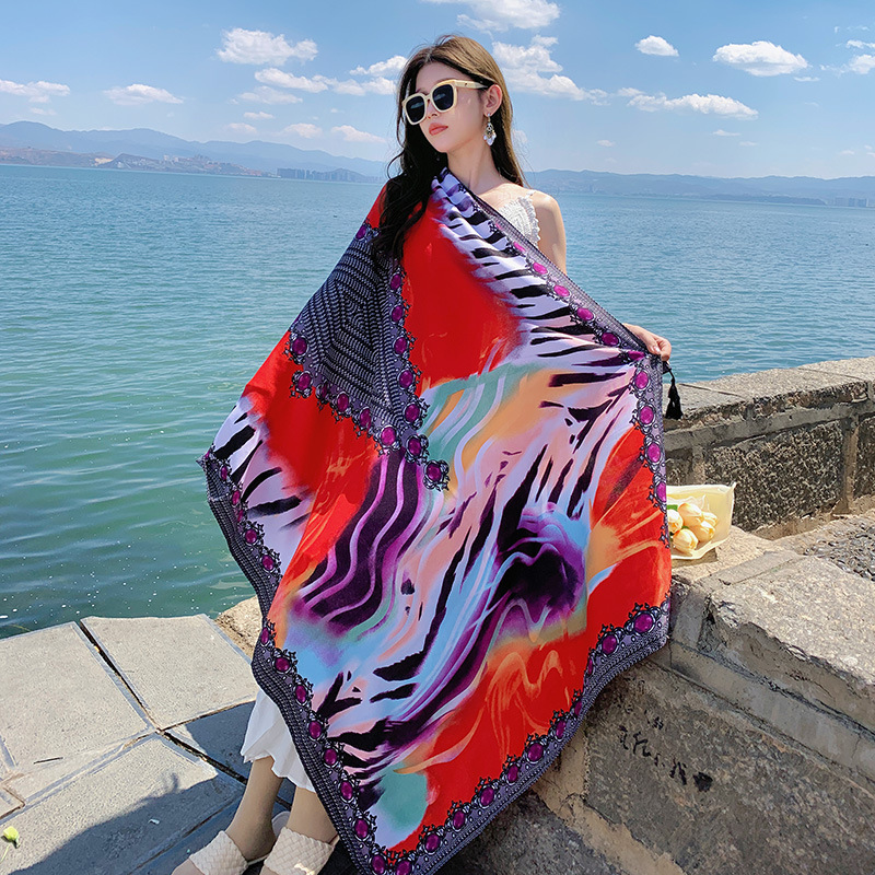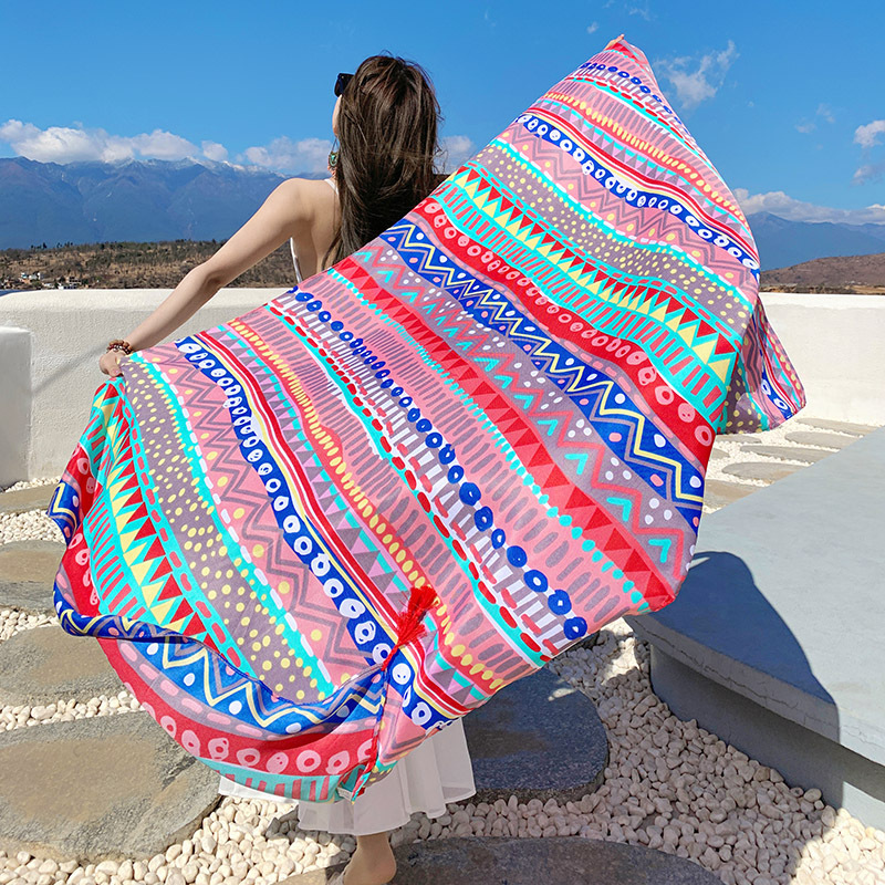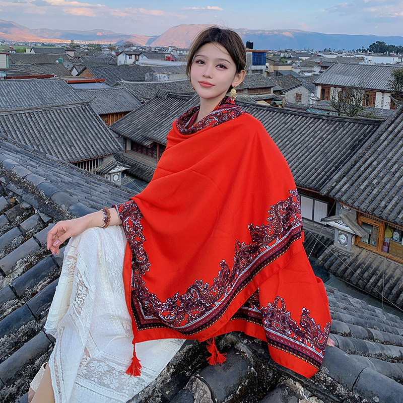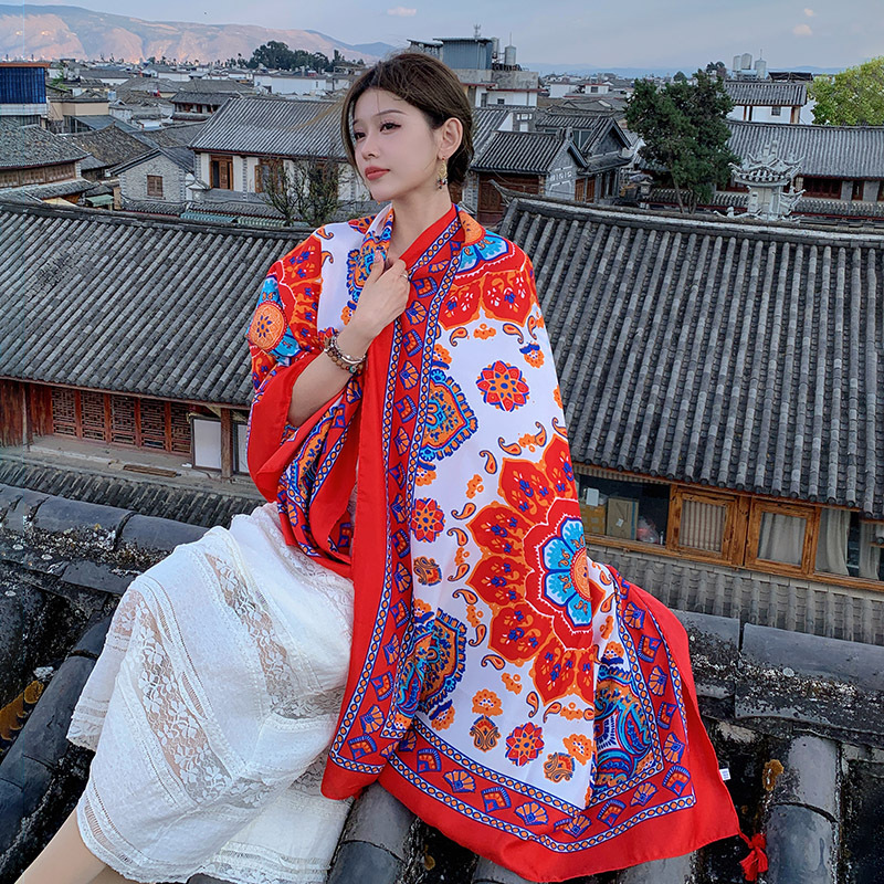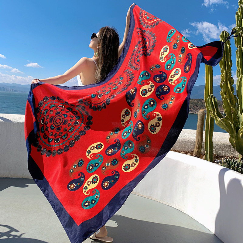 2024 새로운 레드 캐슈 여행 선스크린 스카프 여성의 여름 민족 스타일 스카프 목도리 외부 긴 스카프