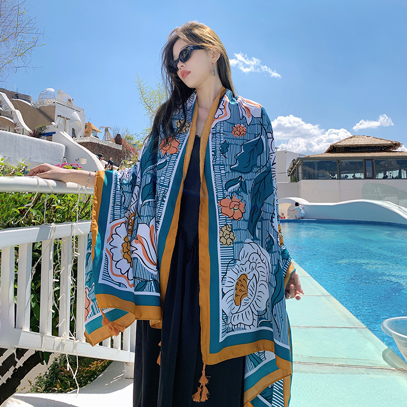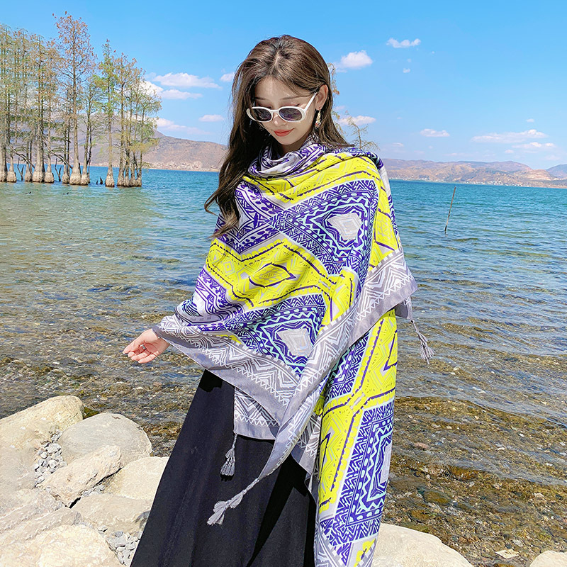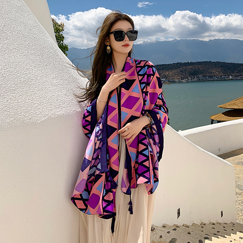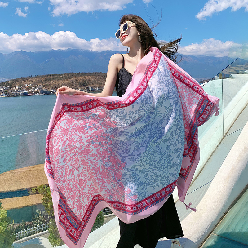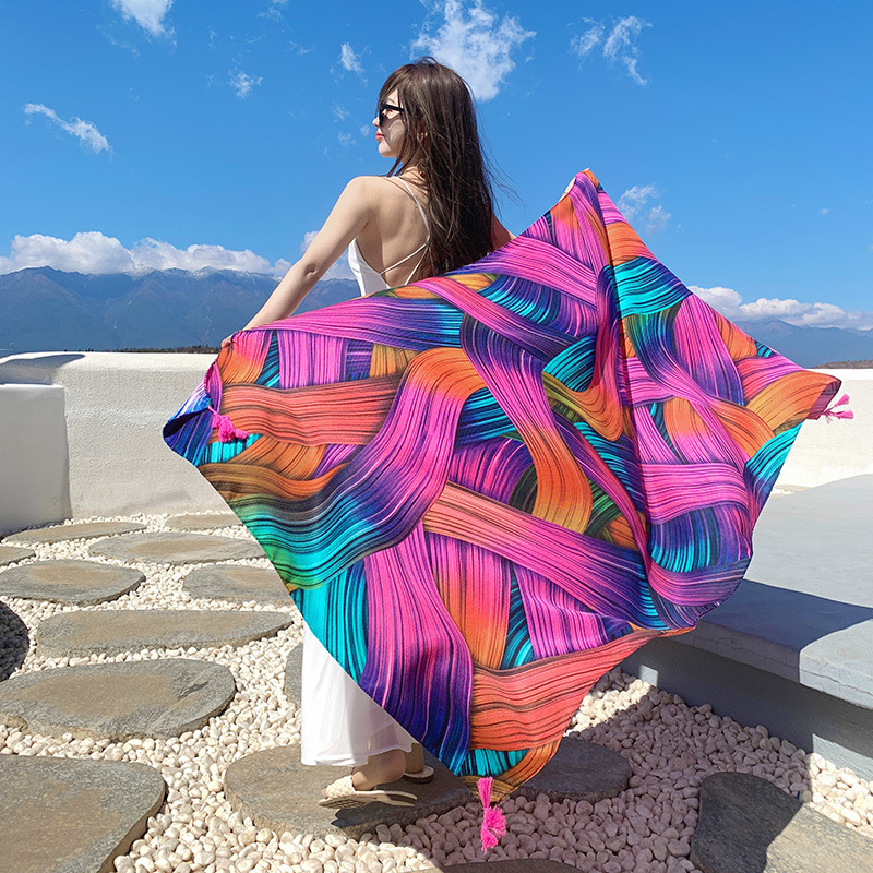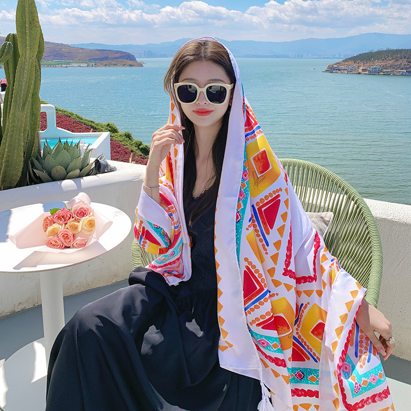 2024 새로운 레드 캐슈 여행 선스크린 스카프 여성의 여름 민족 스타일 스카프 목도리 외부 긴 스카프