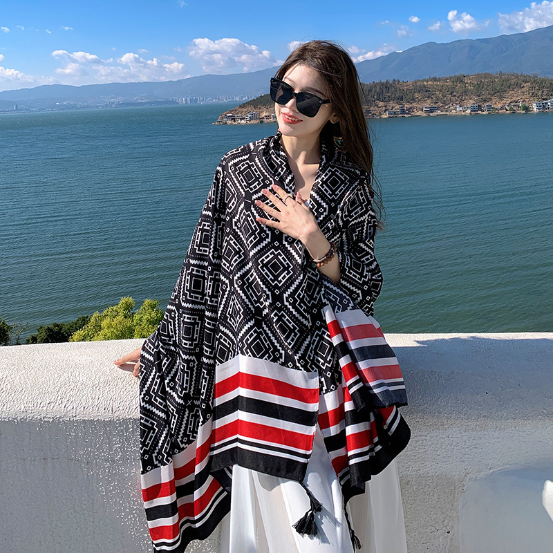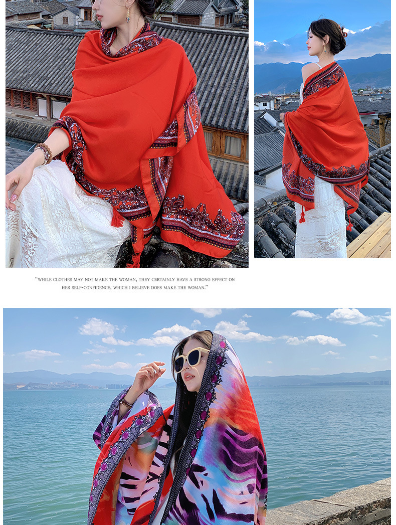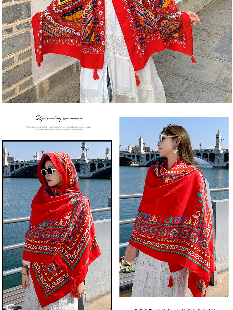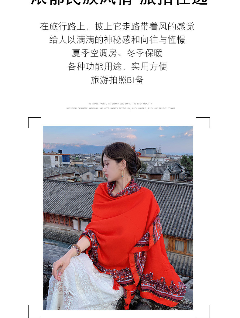 2024 새로운 레드 캐슈 여행 선스크린 스카프 여성의 여름 민족 스타일 스카프 목도리 외부 긴 스카프스토어 가기