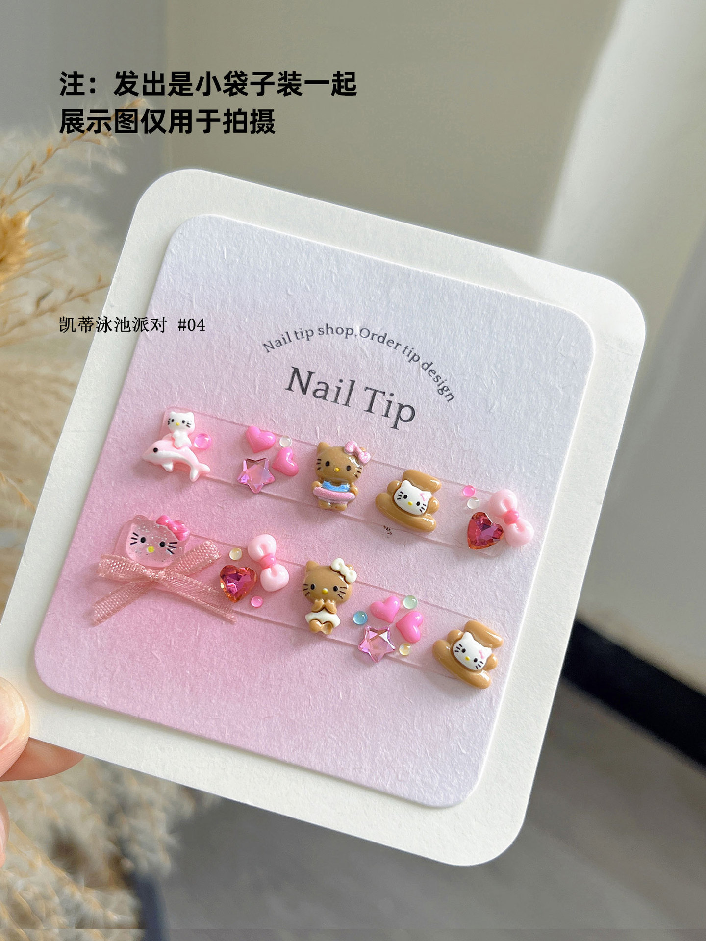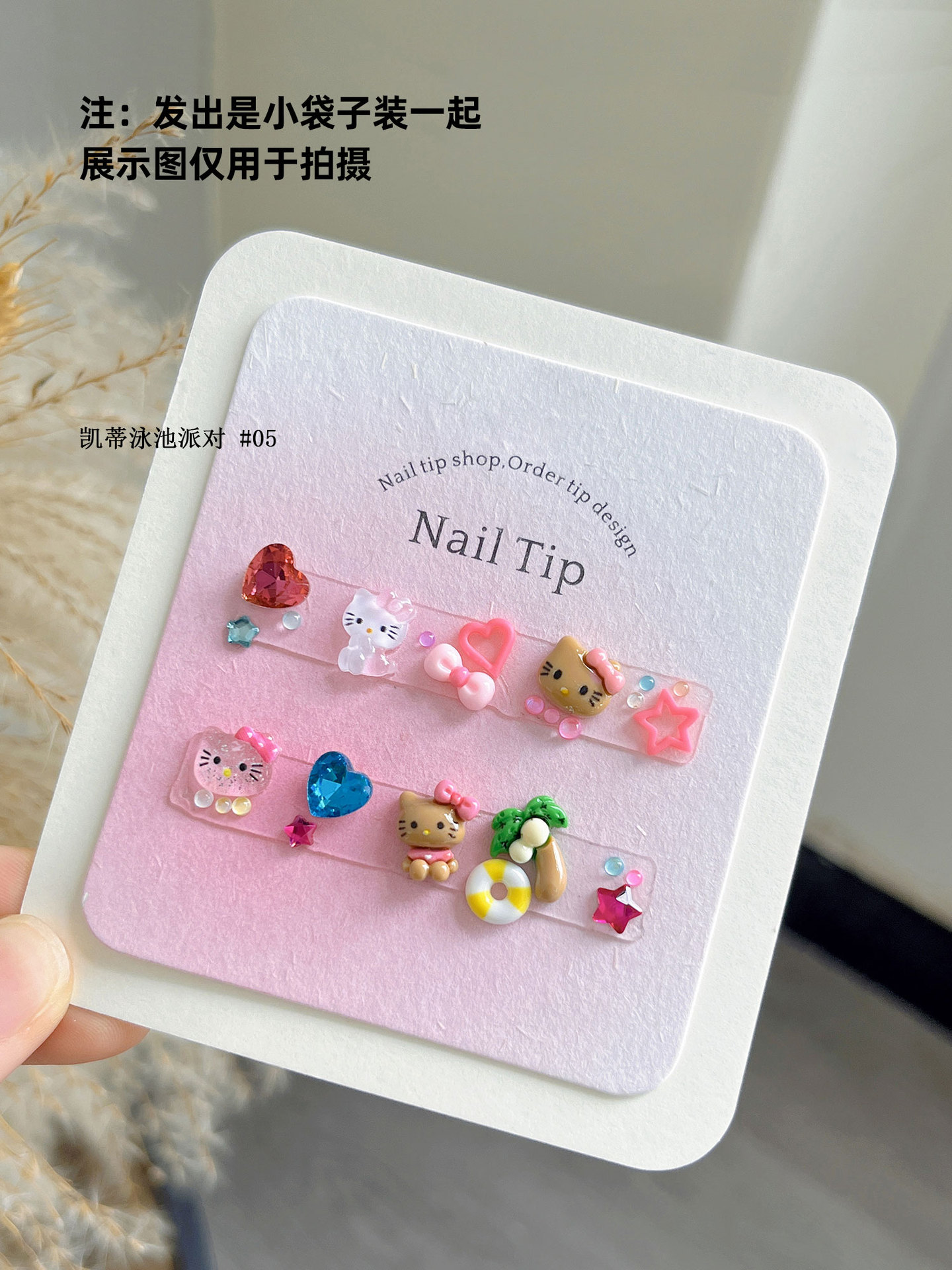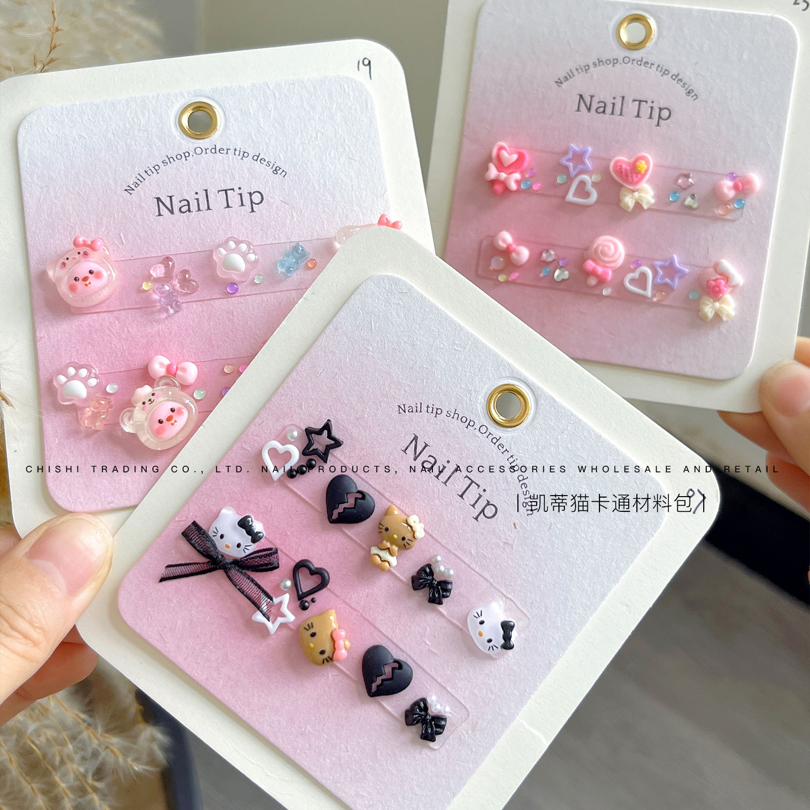 새로운 헬로 키티 소재 가방 네일 아트 액세서리 Kt 고양이 만화 인터넷 유명 수영장 파티 네일 장식스토어 가기