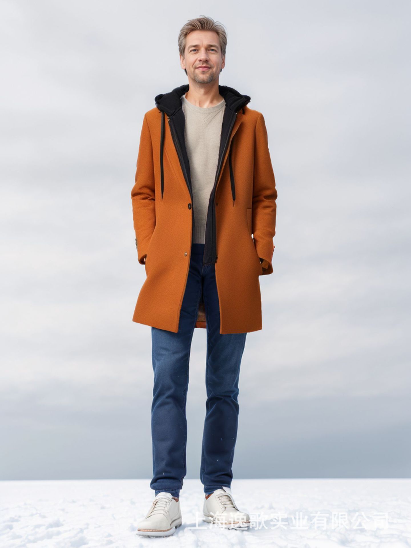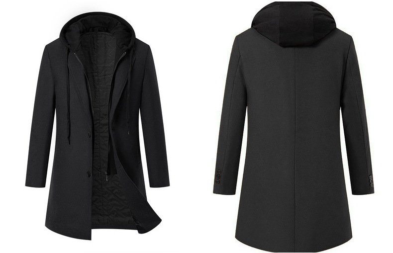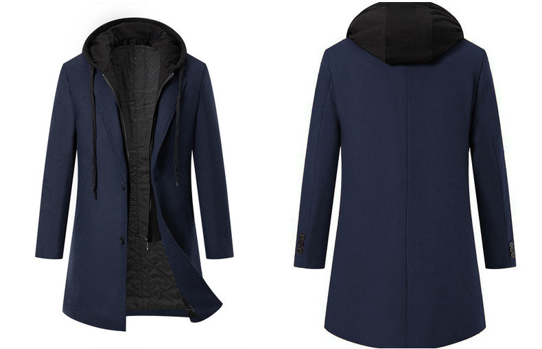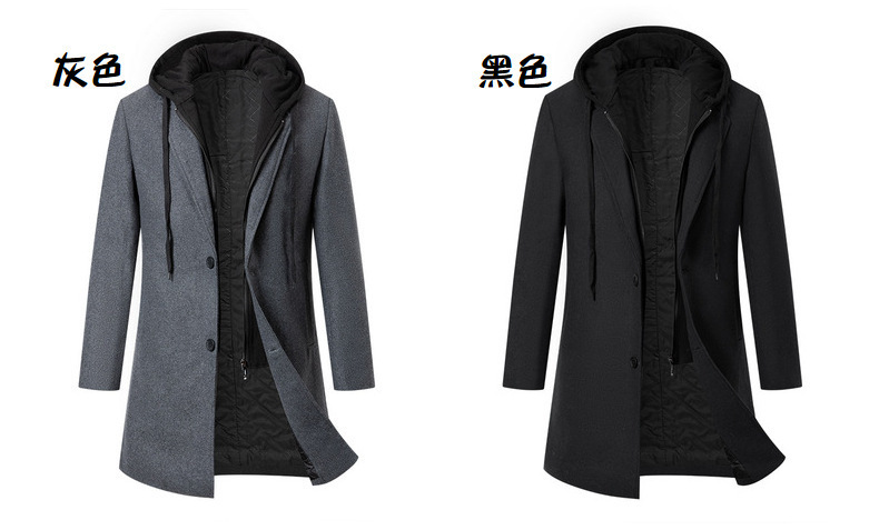 2024 국경을 넘나 드는 가을과 겨울 두꺼운 후드가 달린 가짜 투피스 중간 길이의 모직 코트 퀼트 컬러 차단 슬림 핏 코트 재킷스토어 가기