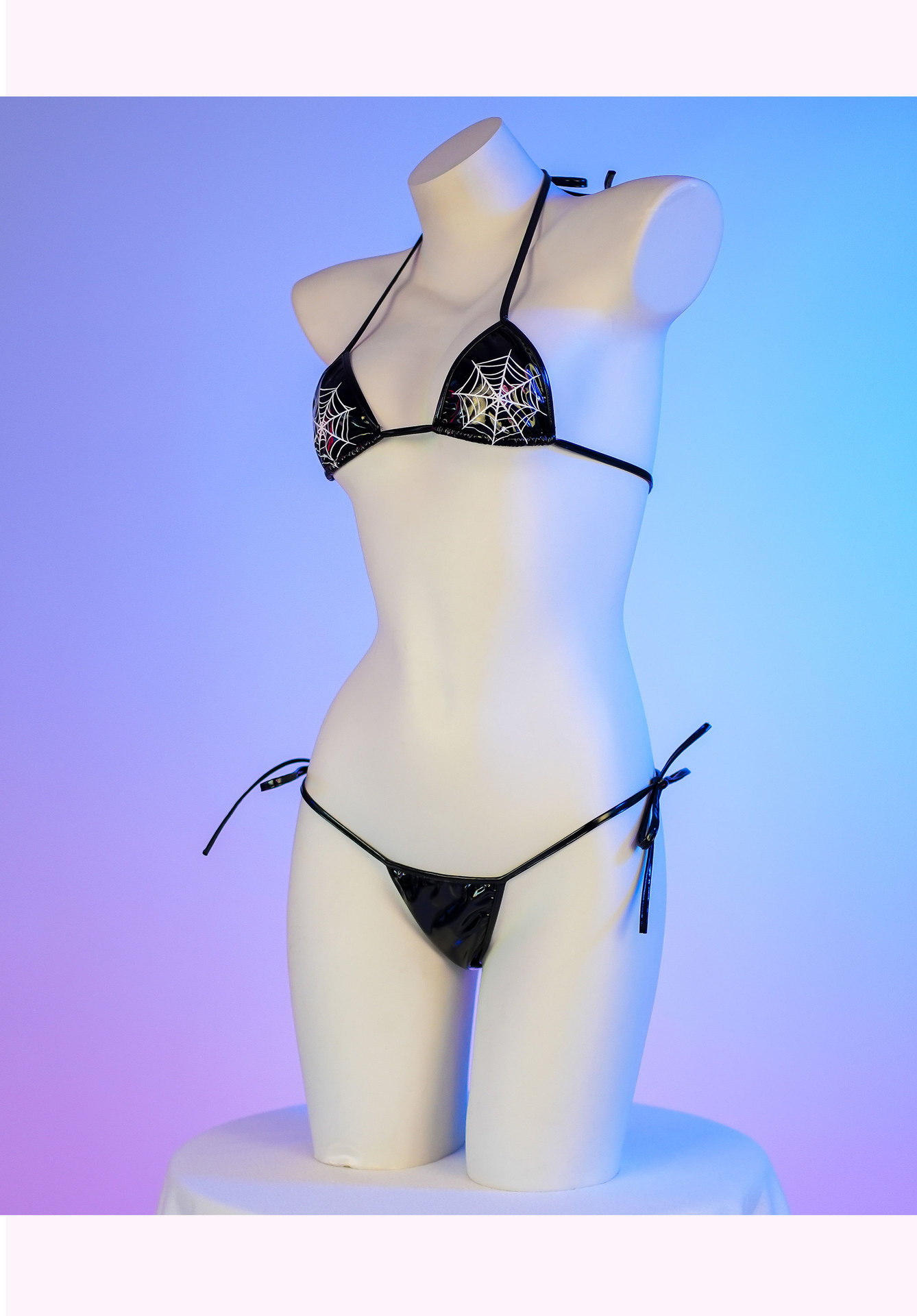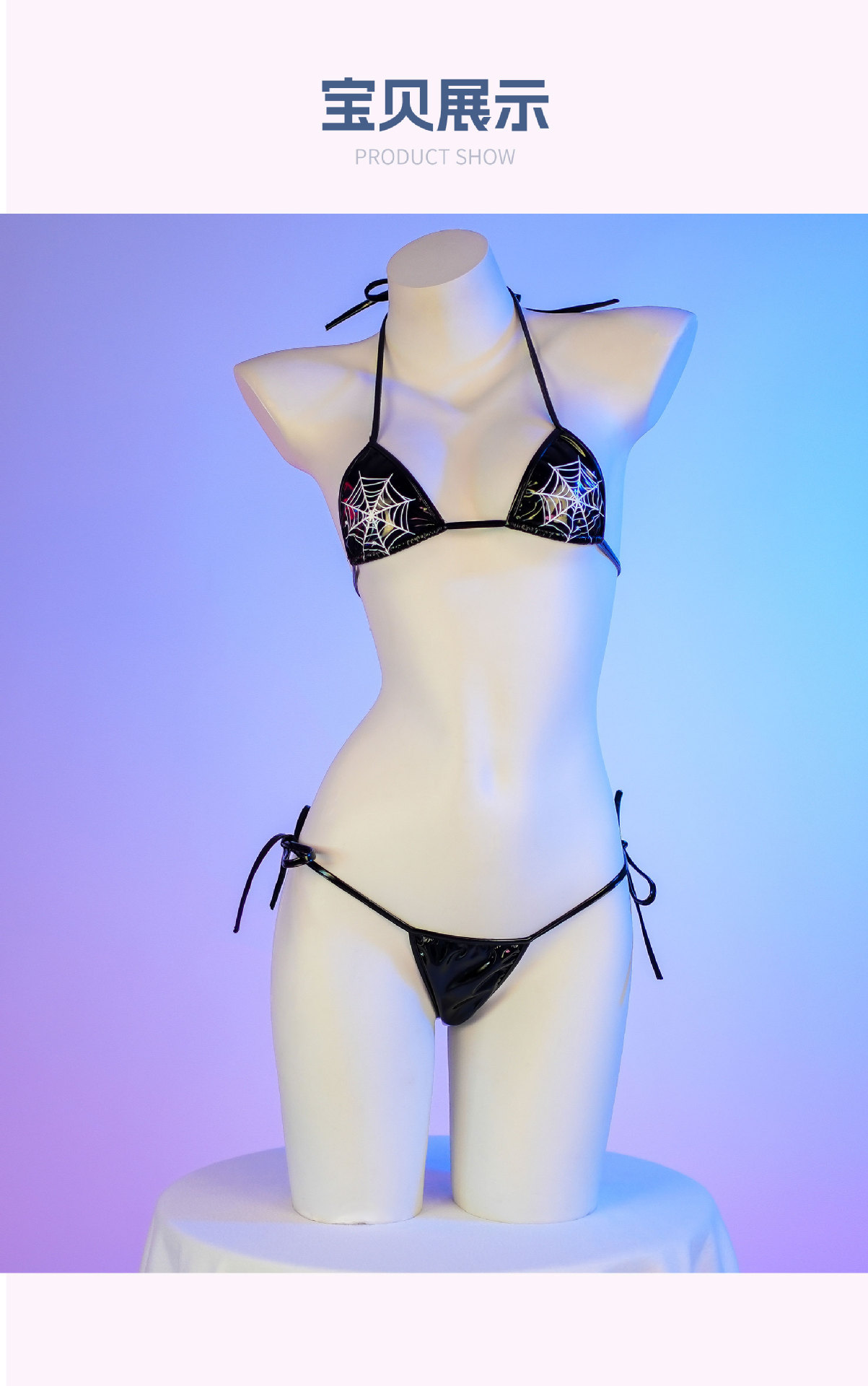 섹시한 3 점 거미 가죽 인쇄 속옷 여성의 섹시한 초소형 비키니 목 스트랩 파자마 C2107