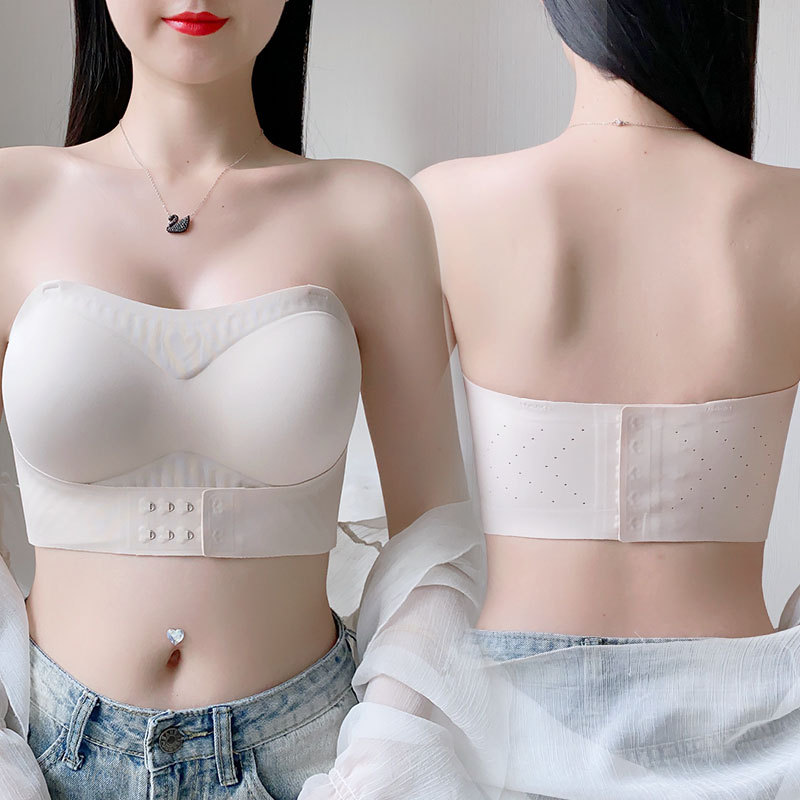 여름 대형 스트랩리스 속옷 여성의 얇은 대형 가슴 작은 푸시 업 처짐 방지 슬립 튜브 브래지어 아름다운 등 브래지어스토어 가기