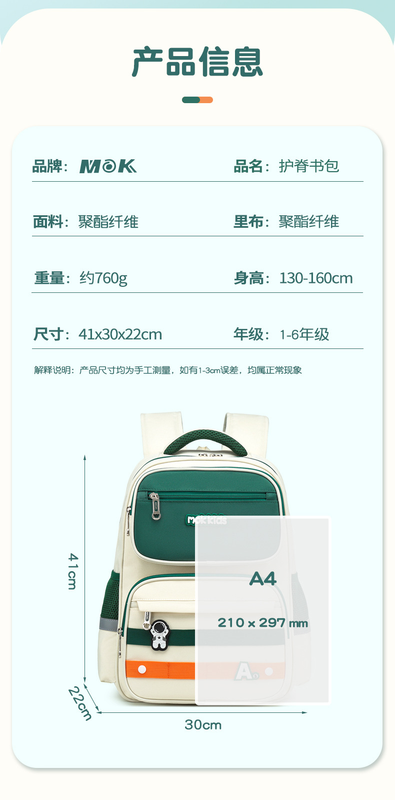 초등학생을위한 MOK Schoolbag 3 ~ 6 학년 소년 소녀를위한 척추 보호 배낭 대용량 어린이 배낭