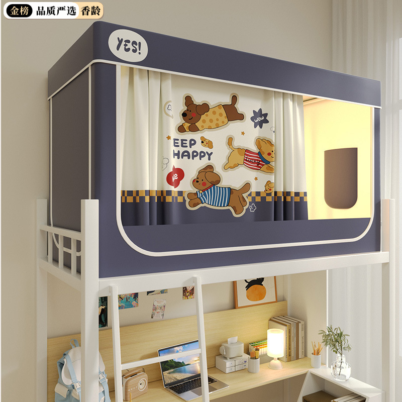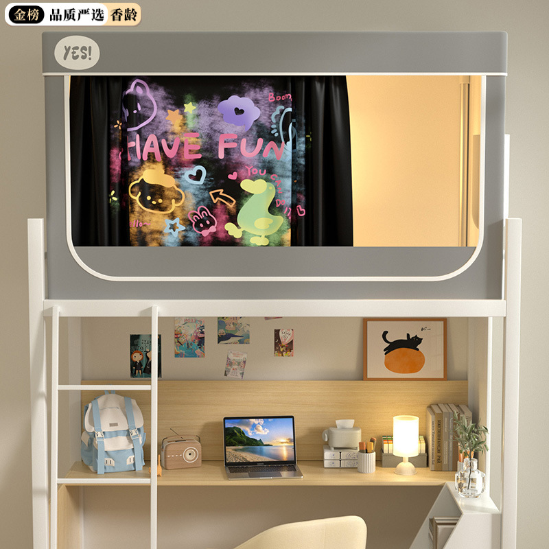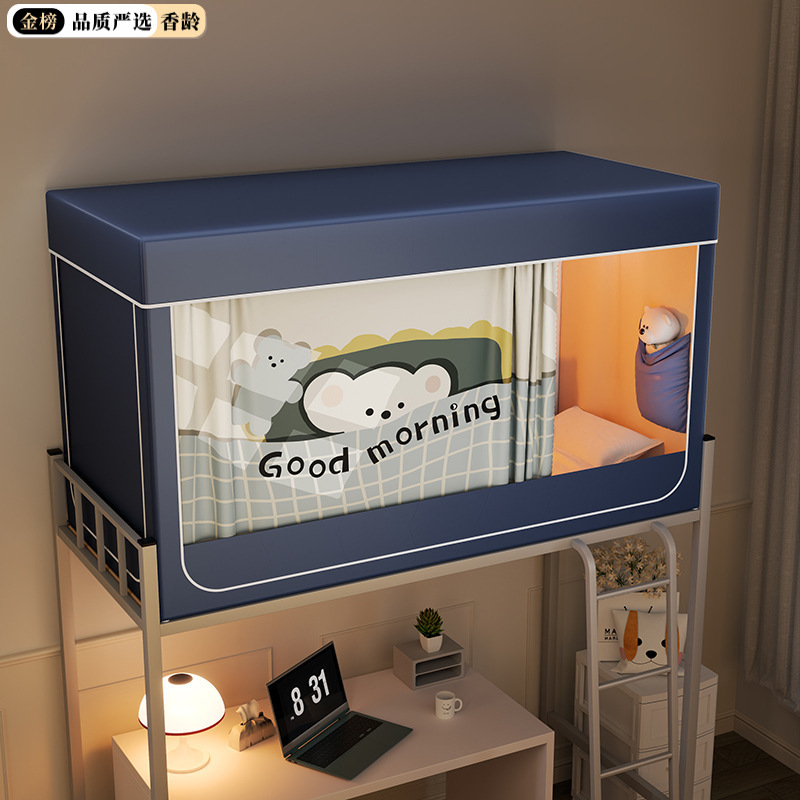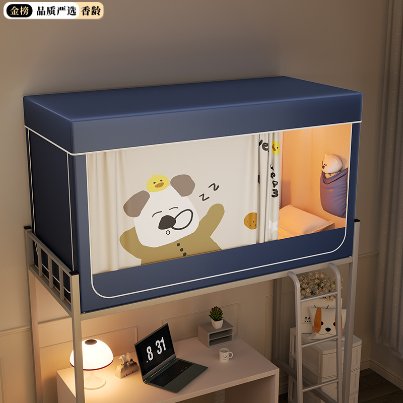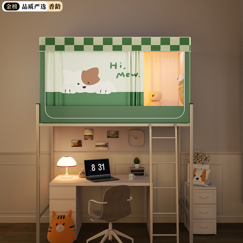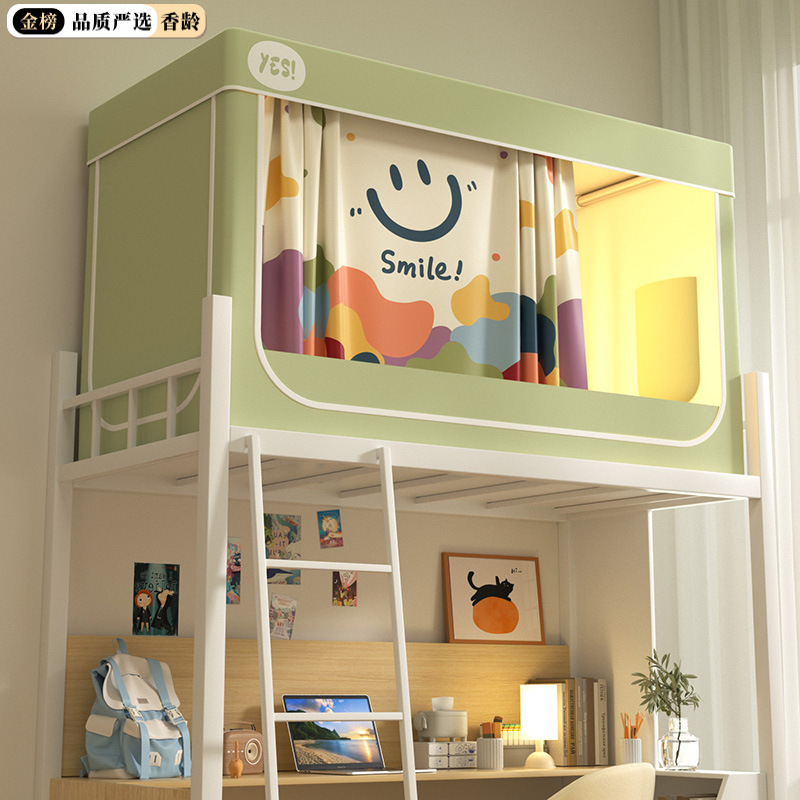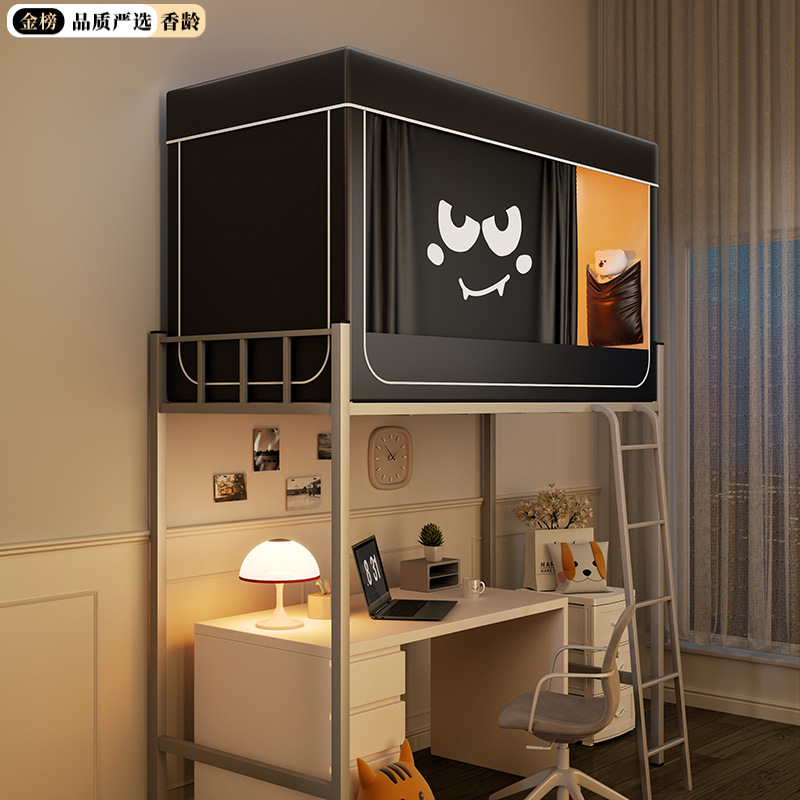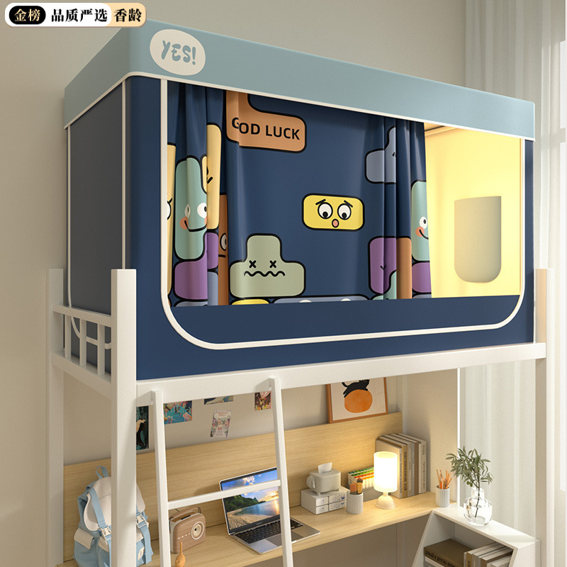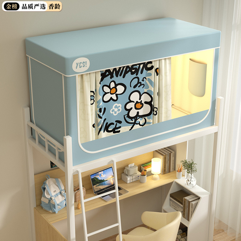 심플 라이트 럭셔리 99% 강한 음영 실버 코팅 학생 기숙사 싱글 침대 상단 및 하단 침대 커튼 모기장 공기 공급 팬로드스토어 가기