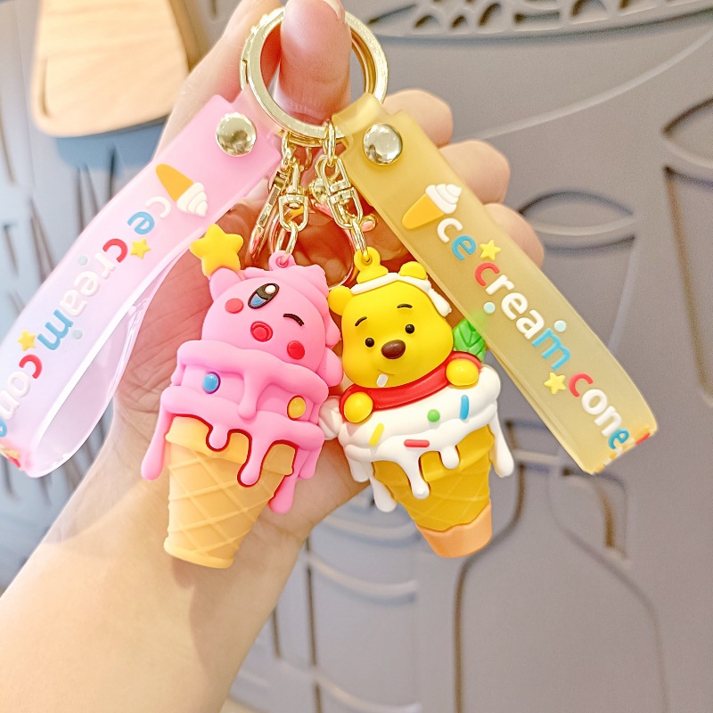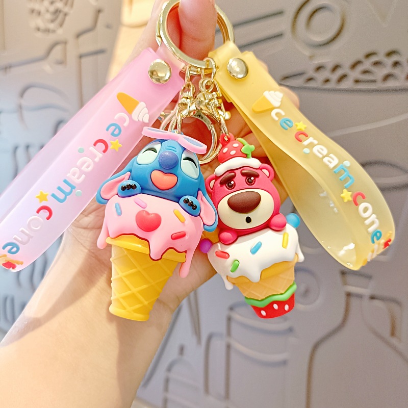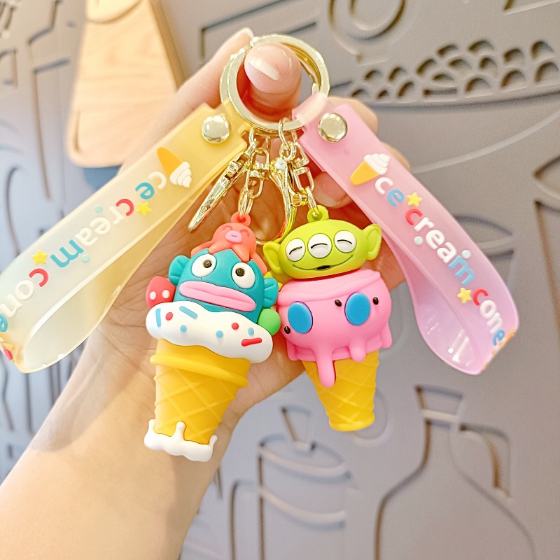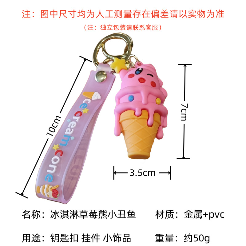 아이스크림 뻣뻣한 딸기 곰 만화 키 체인 광대 물고기 스타 캐비 귀여운 가방 펜던트 작은 선물스토어 가기