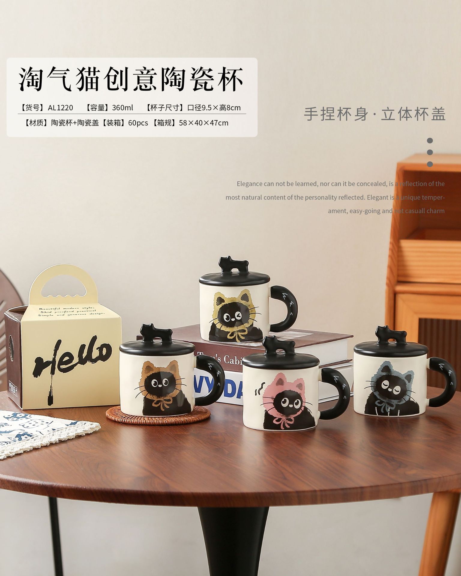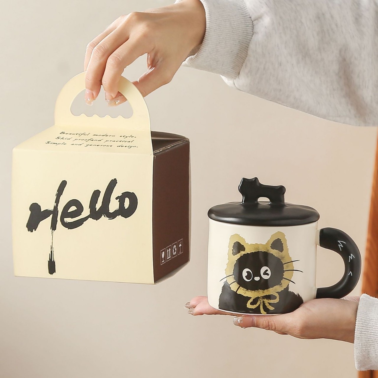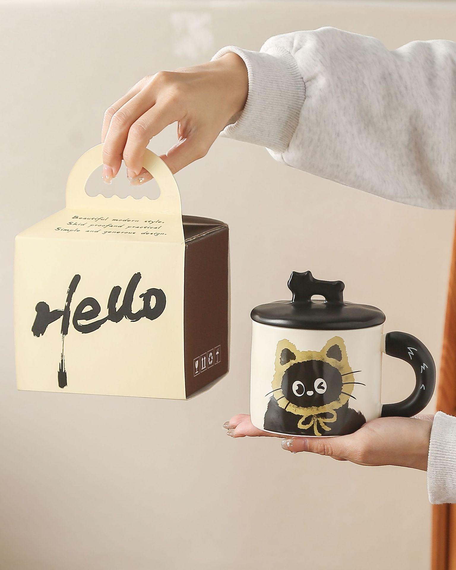 고양이 머그컵 레트로 디자인 세라믹 물컵 뚜껑 포함 선물세트 기념품 고급스러운 컵 만화 소녀용스토어 가기