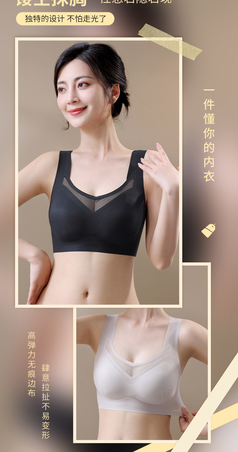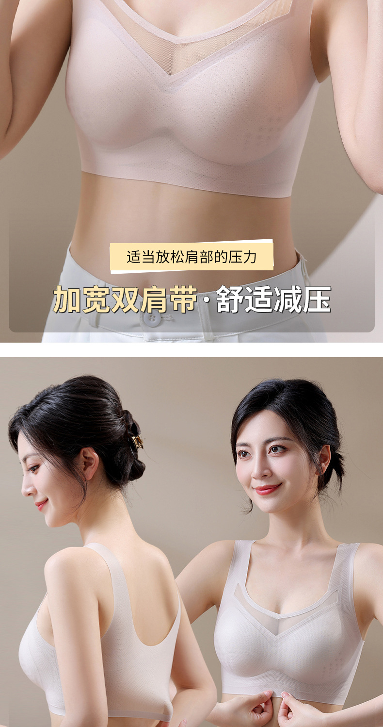 여름 신상품, 얇고 통기성이 좋으며 시원하고 흔적이 없는 속옷, 푸쉬업, 보조가슴축소, 처짐방지, 와이어프리 스포츠 브라