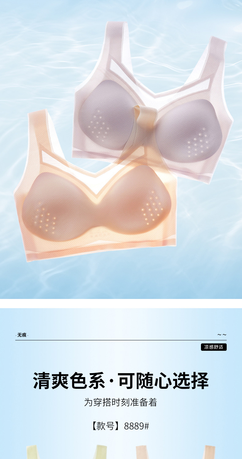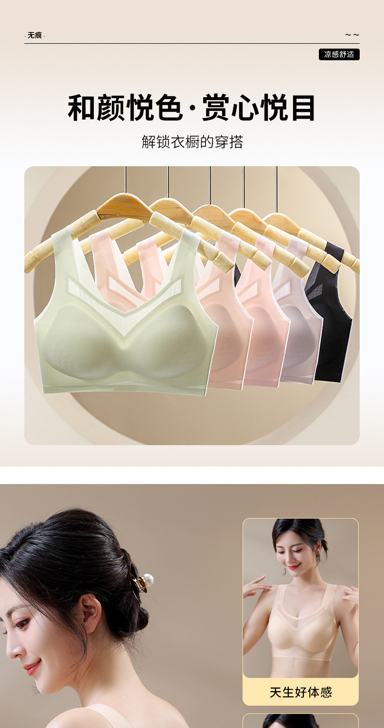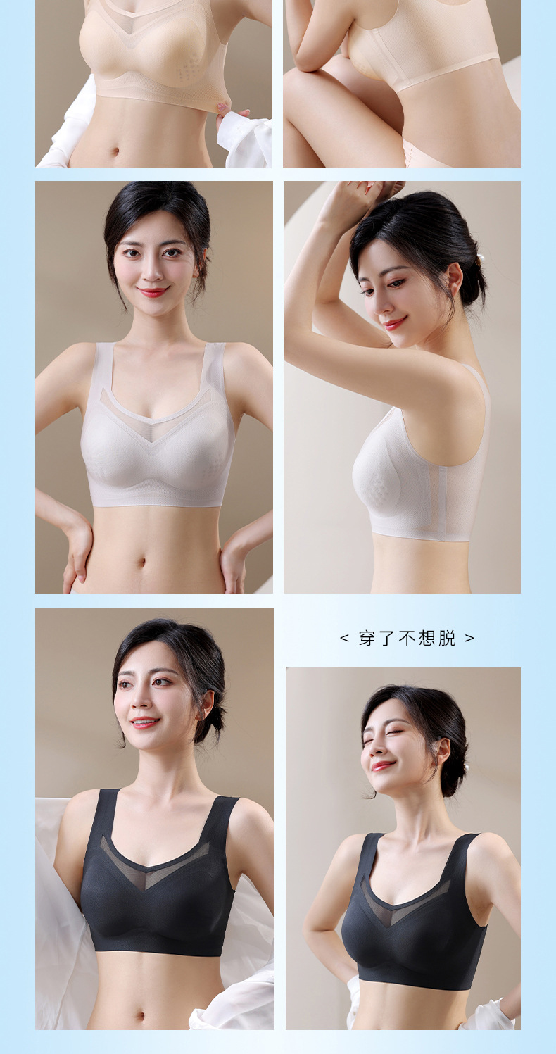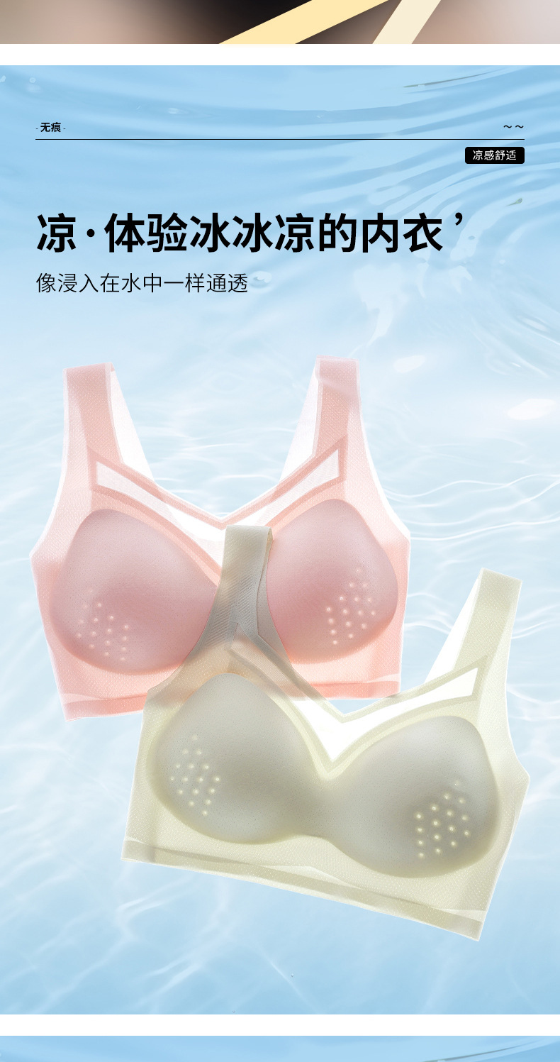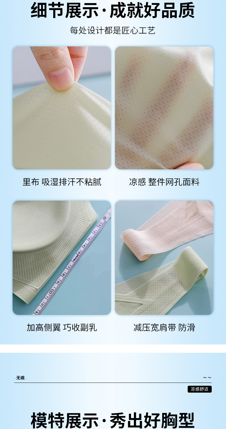 여름 신상품, 얇고 통기성이 좋으며 시원하고 흔적이 없는 속옷, 푸쉬업, 보조가슴축소, 처짐방지, 와이어프리 스포츠 브라스토어 가기