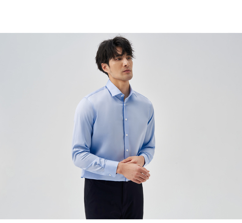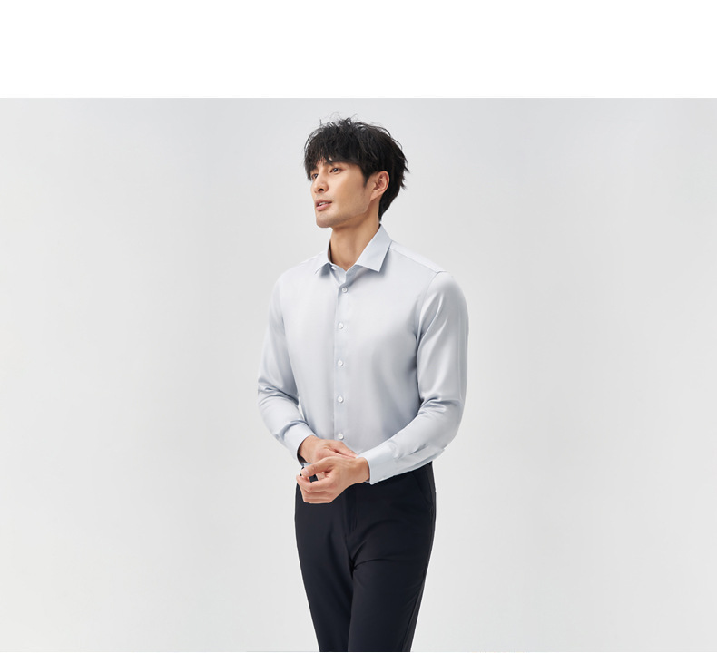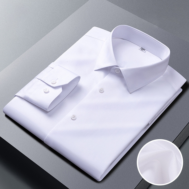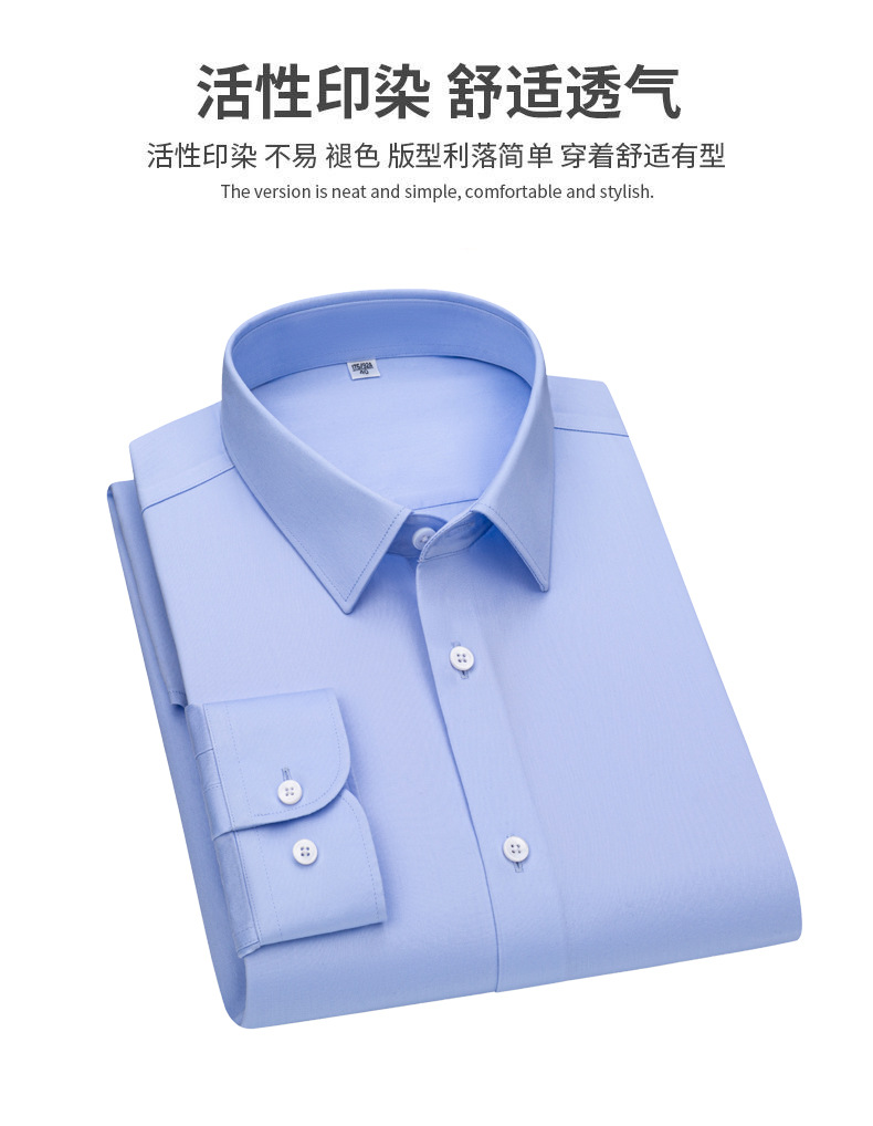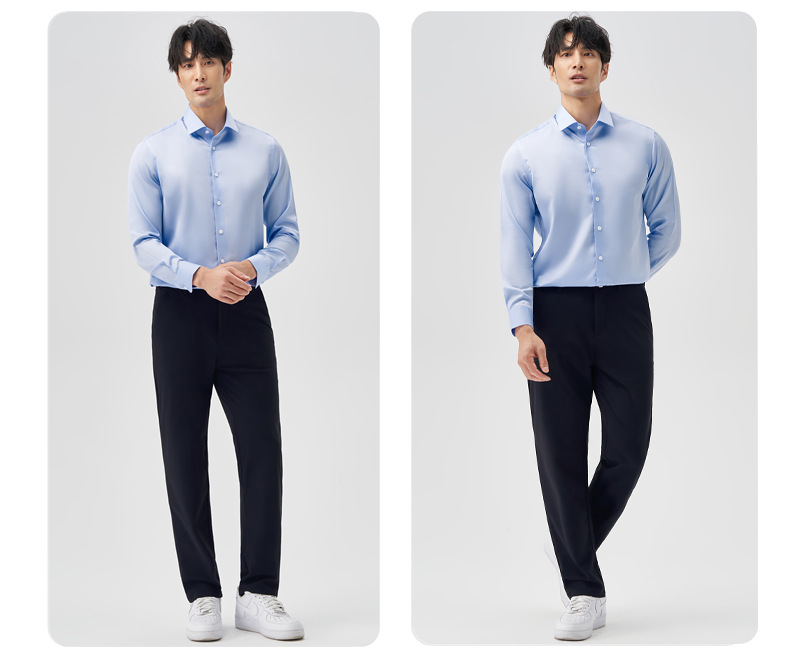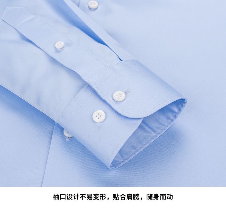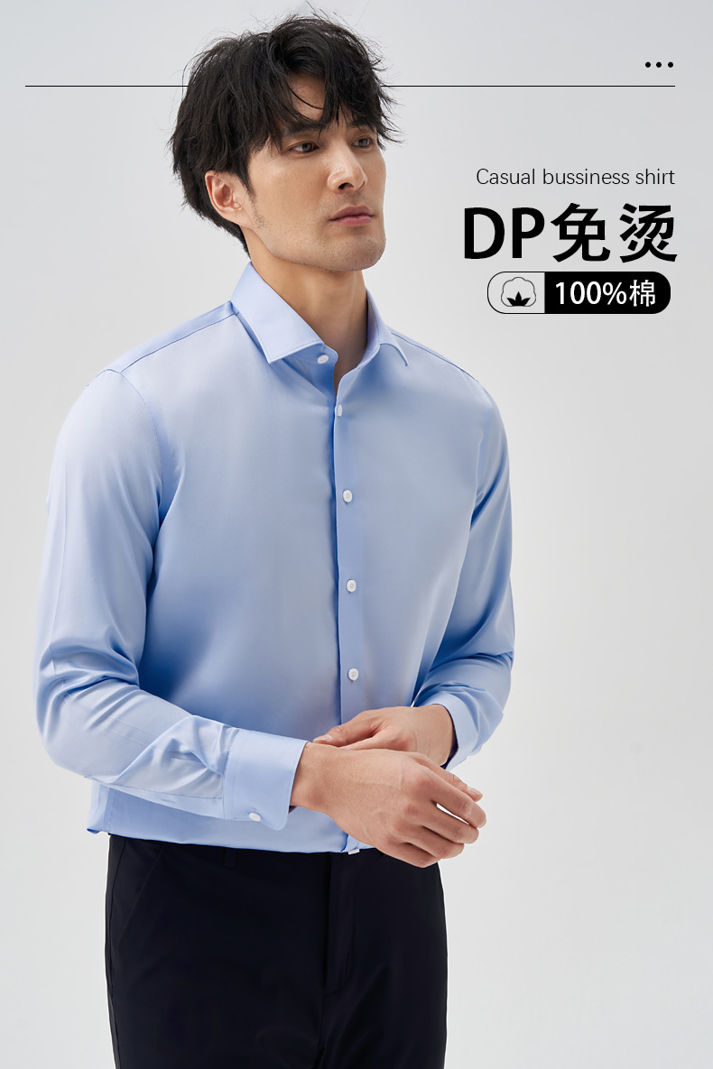 200 카운트 DP 순수 코튼 노 아이론 하이 엔드 새틴 화이트 셔츠 남성용 긴팔 비즈니스 정장 주름 방지 블루 셔츠 결혼식스토어 가기