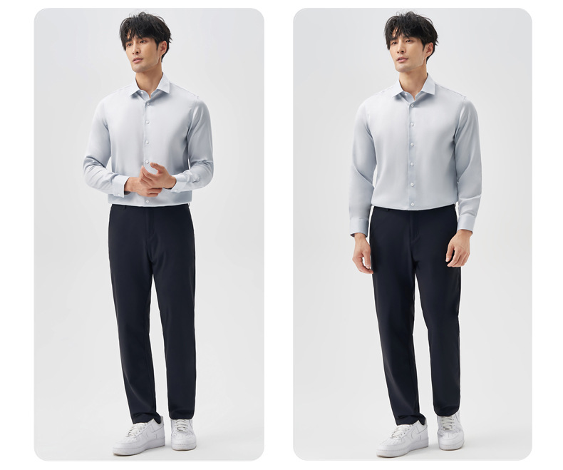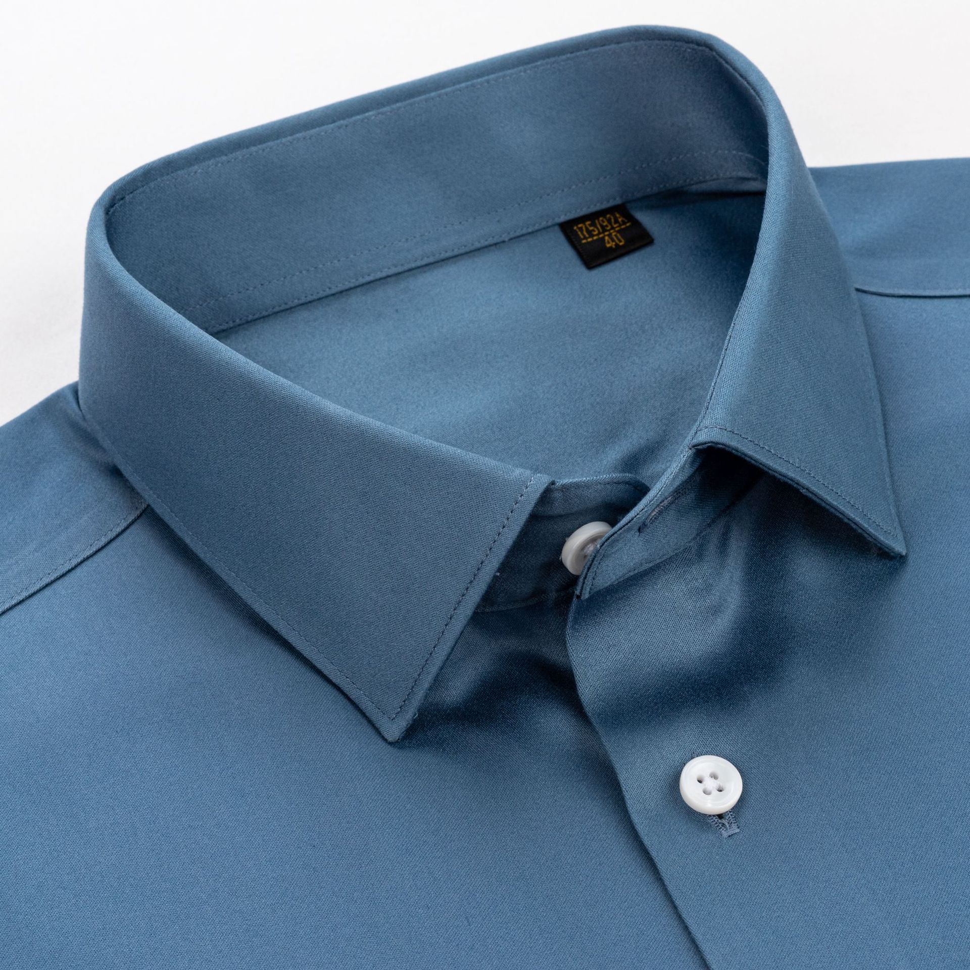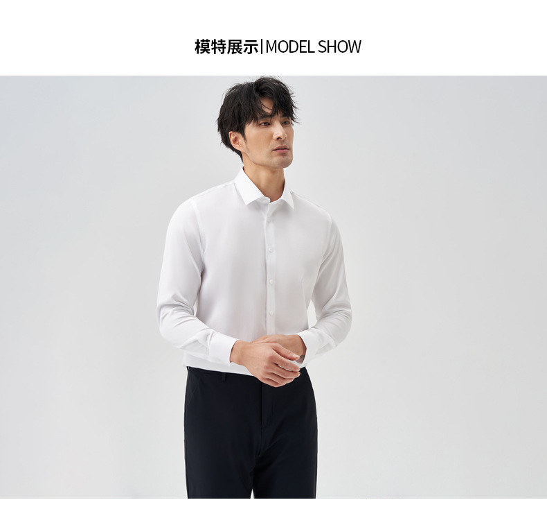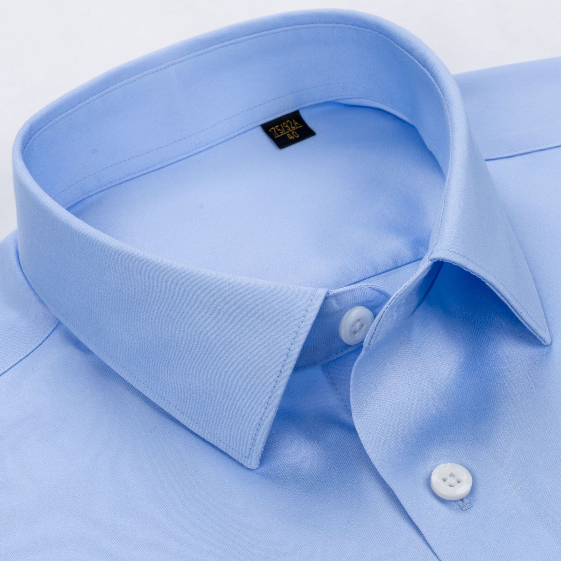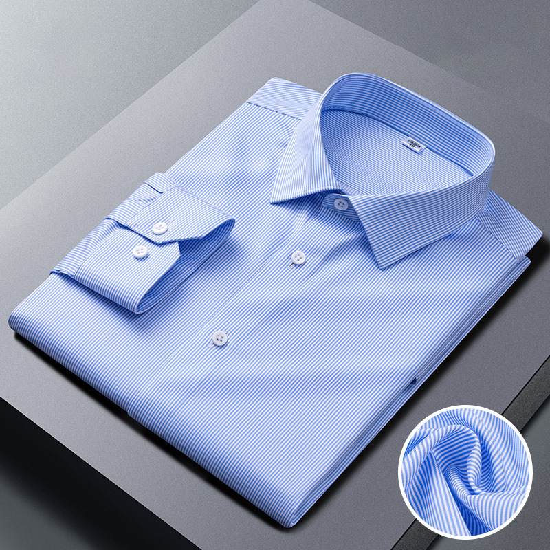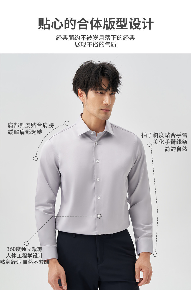 200 카운트 DP 순수 코튼 노 아이론 하이 엔드 새틴 화이트 셔츠 남성용 긴팔 비즈니스 정장 주름 방지 블루 셔츠 결혼식스토어 가기