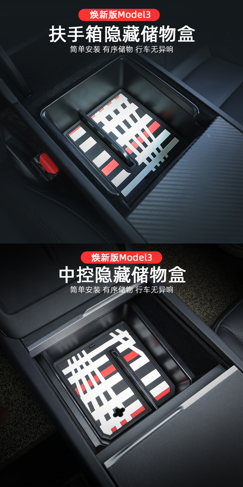 테슬라 Huanxin Model3 팔걸이 상자 저장 상자 중앙 제어 저장 숨겨진 저장 상자를 위해스토어 가기