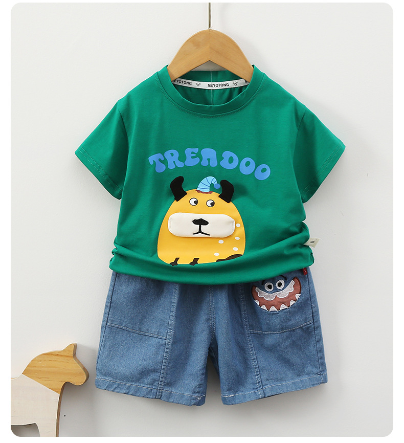 남아 여름옷 세트 2025 신상 유아 여름옷 아기 만화 반팔 투피스 세트 도매스토어 가기