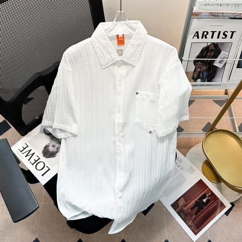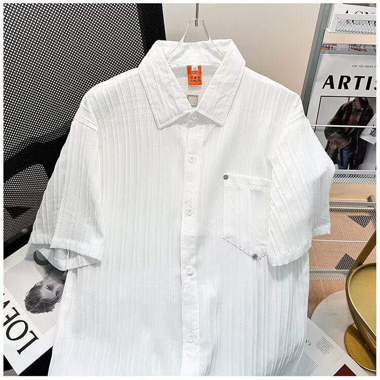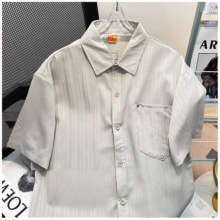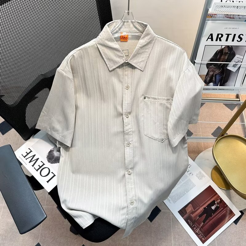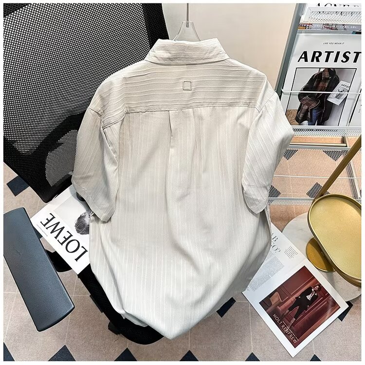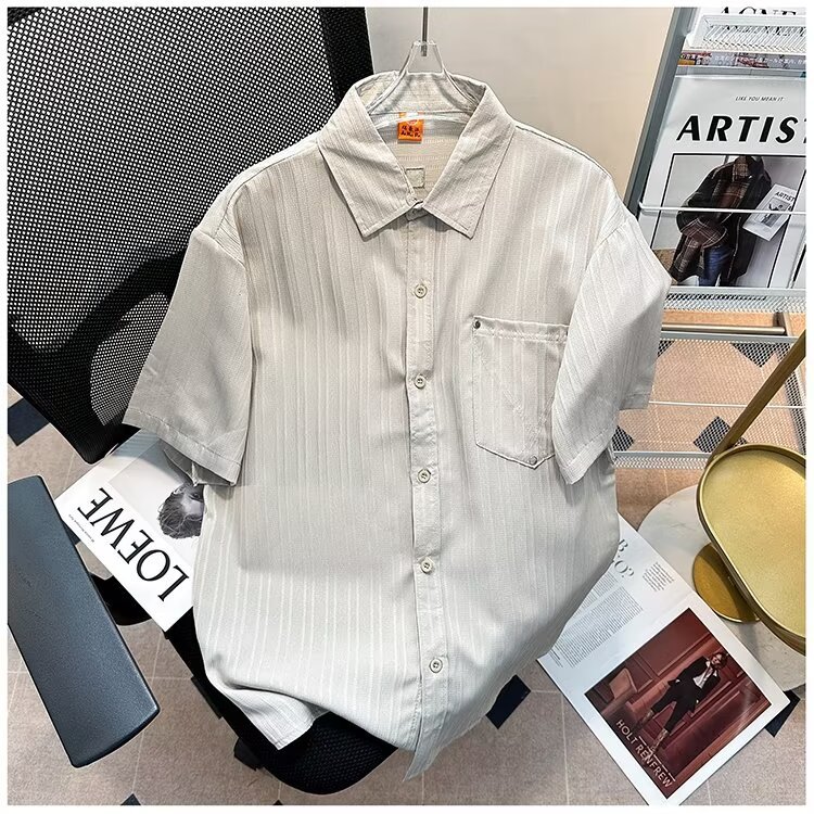 2023 년 여름 새 영국 반팔 셔츠 남자 풀오버 중립 스타일 느슨한 T-스트라이프 셔츠 남자의 흰색 한국 스타일