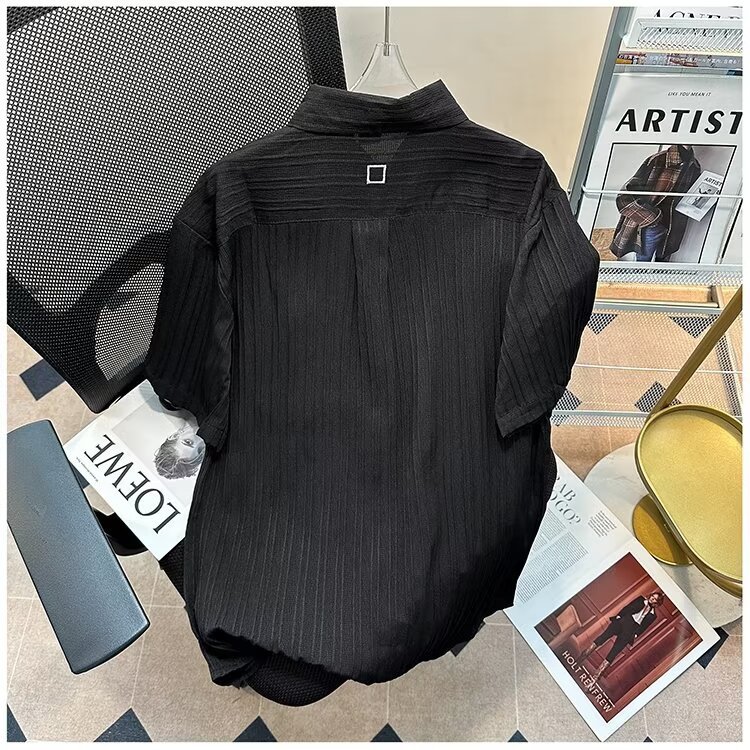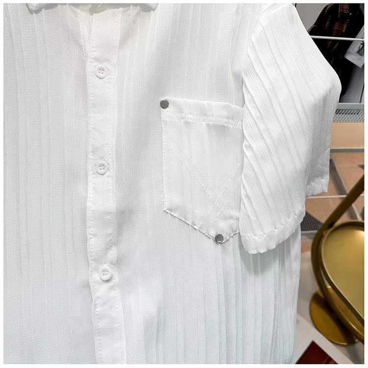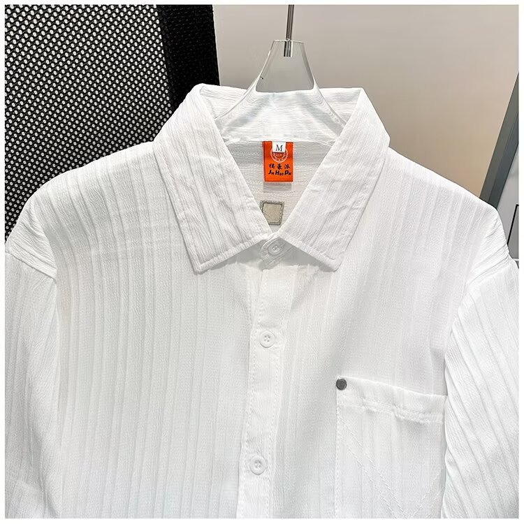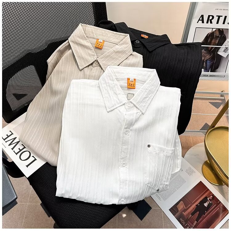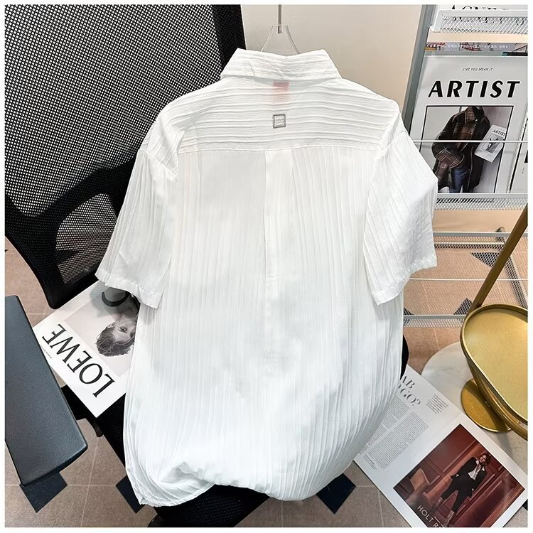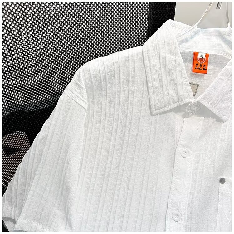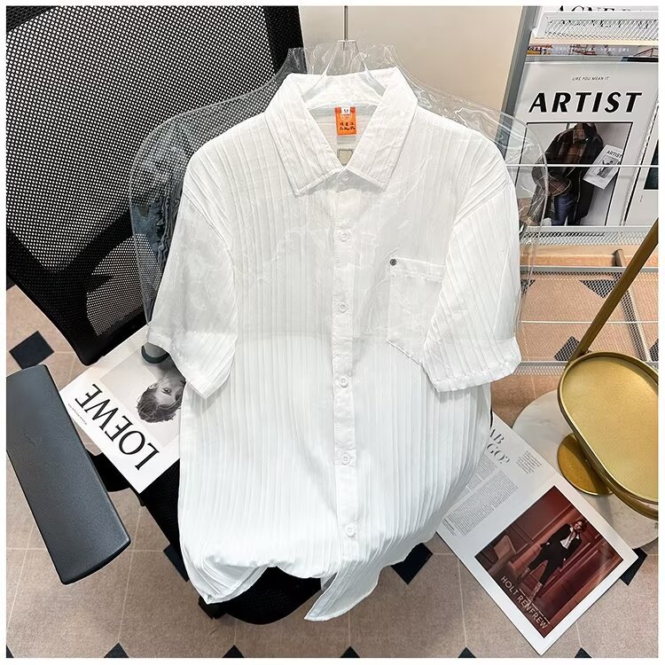 2023 년 여름 새 영국 반팔 셔츠 남자 풀오버 중립 스타일 느슨한 T-스트라이프 셔츠 남자의 흰색 한국 스타일