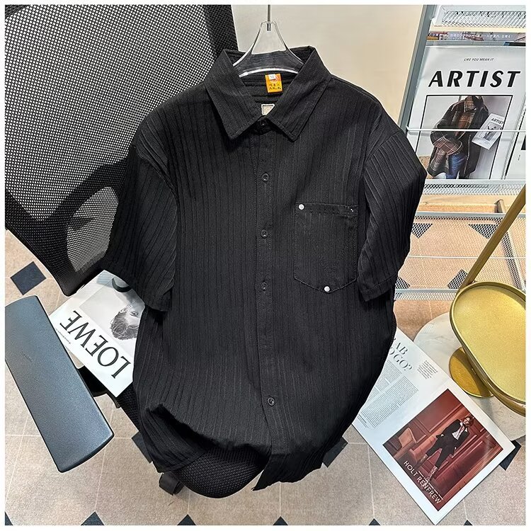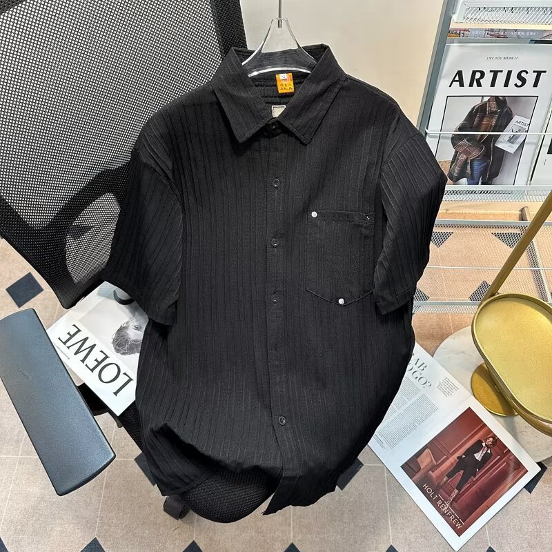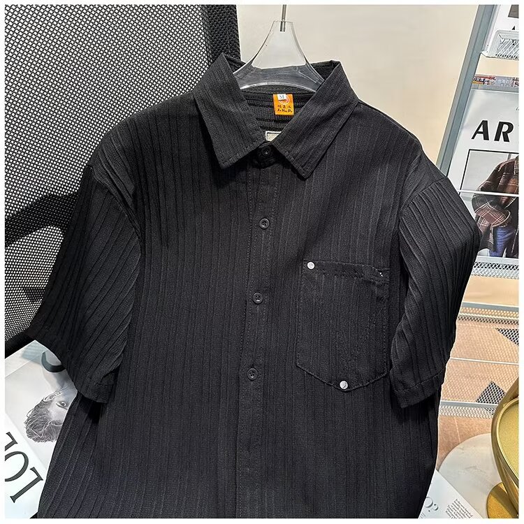 2023 년 여름 새 영국 반팔 셔츠 남자 풀오버 중립 스타일 느슨한 T-스트라이프 셔츠 남자의 흰색 한국 스타일스토어 가기