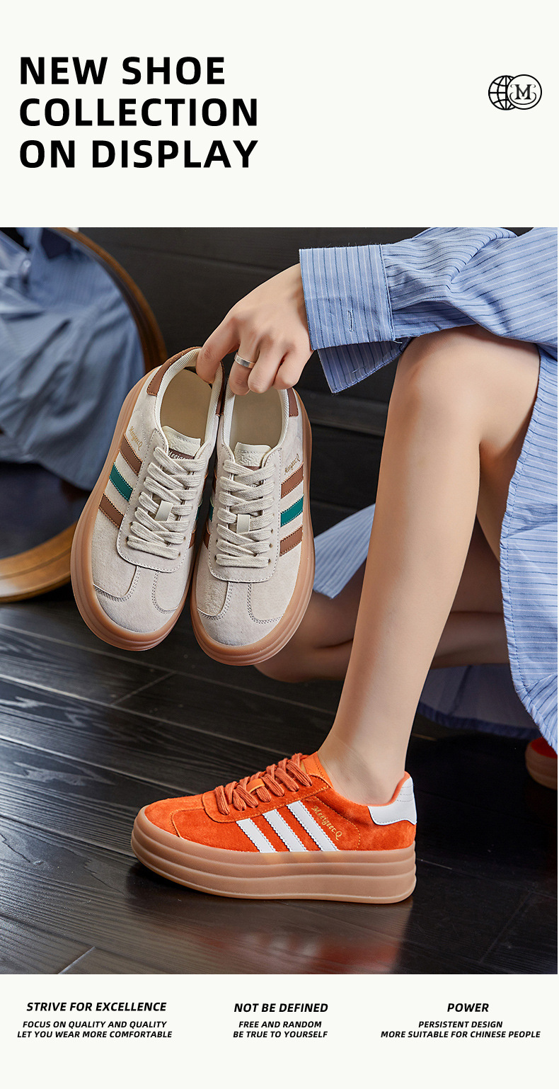 여성용 천연 가죽 데친 신발 2025 가을 신상 두꺼운 밑창 흰색 신발 여성 캐주얼 키높이 신발 패션 다용도 스니커즈스토어 가기